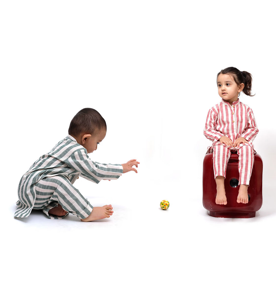 Set of 2 - Noddy Dusky Red Stripes Kurta Pajama