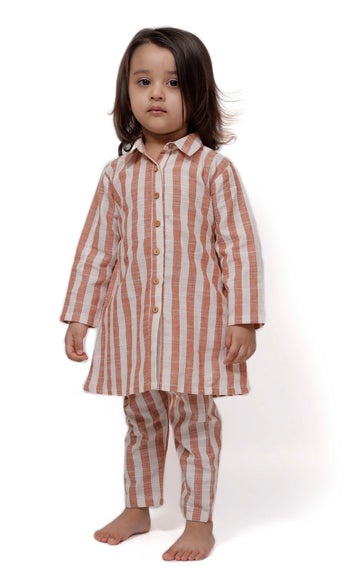 Set of 2 - Piglet Tangy Orange Stripes Tunic Kurta Pajama