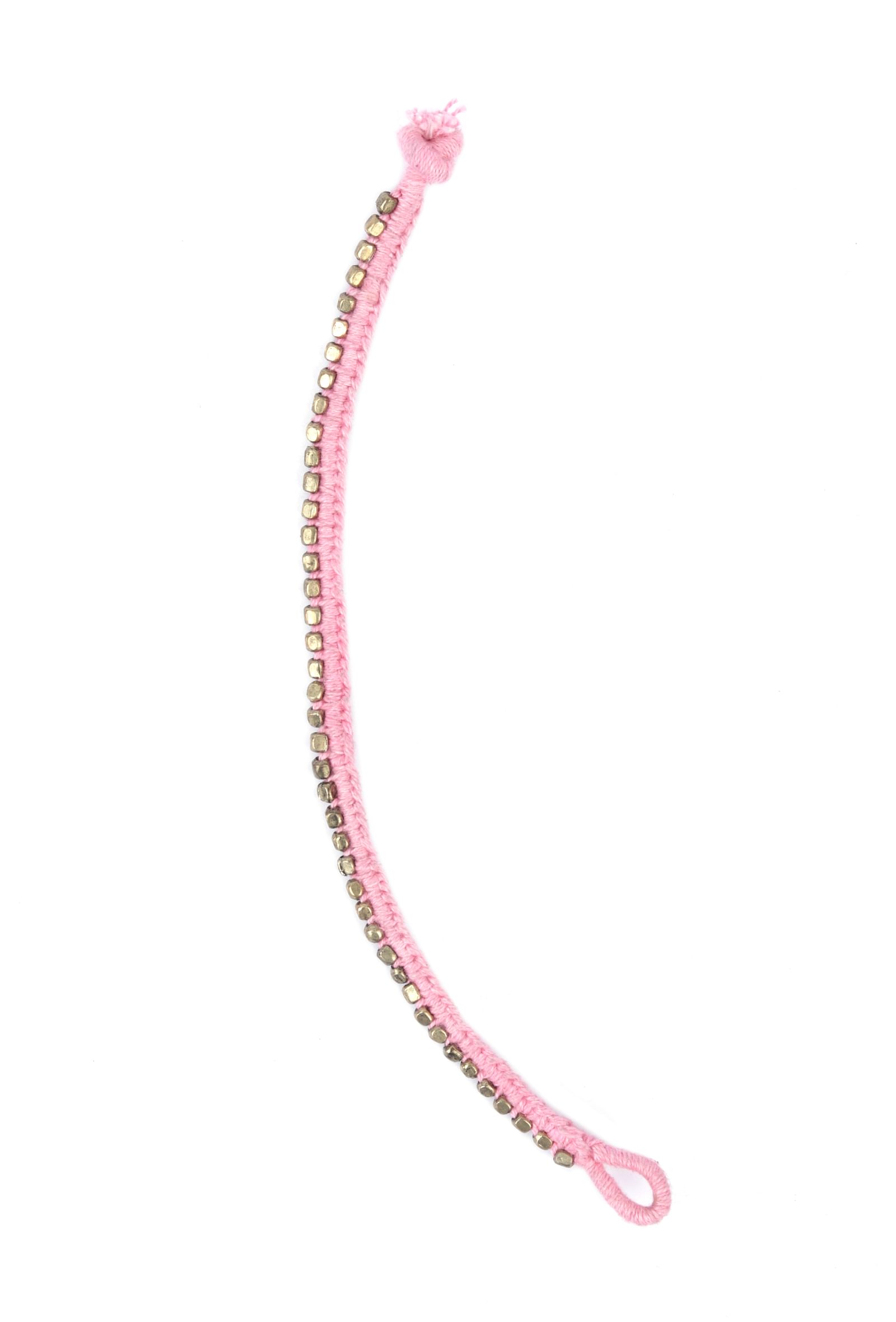 Set Of 2: Cetana Pink Thread & Antique Plated Brass Beaded Anklets