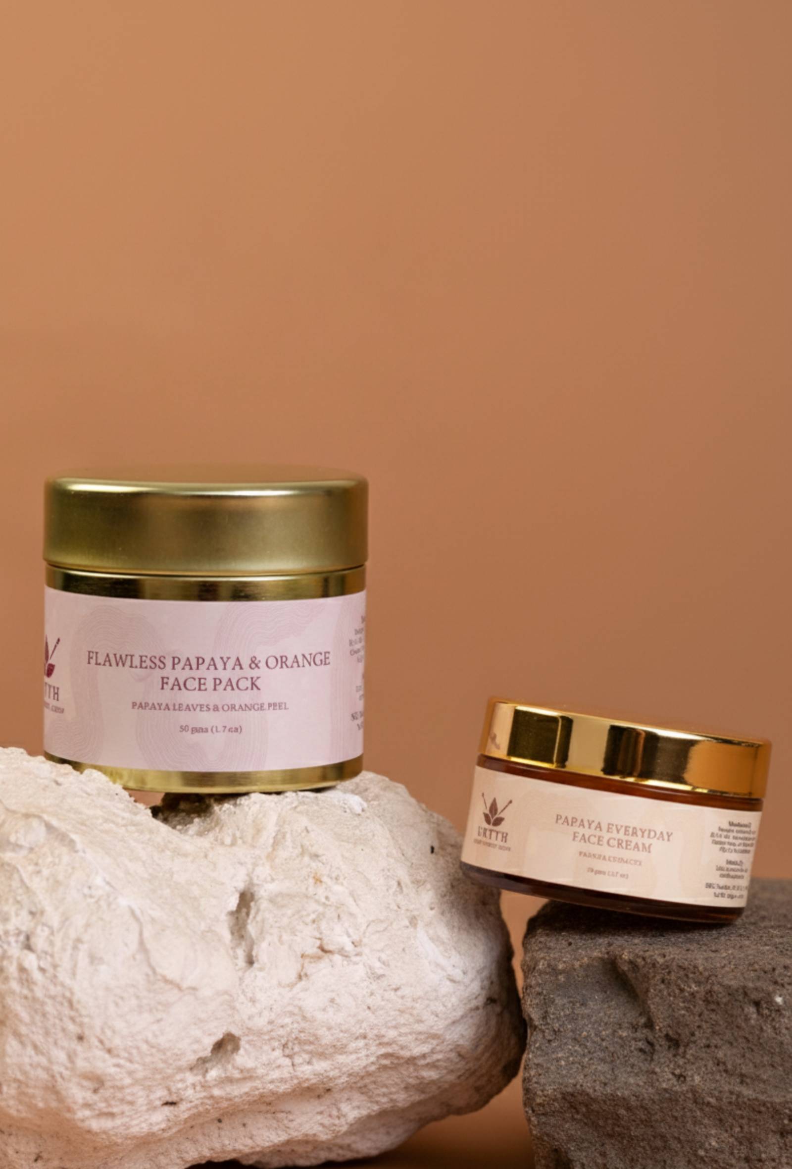 Ingredients: Papaya, Orange, Turmeric & Sandalwood Powder.