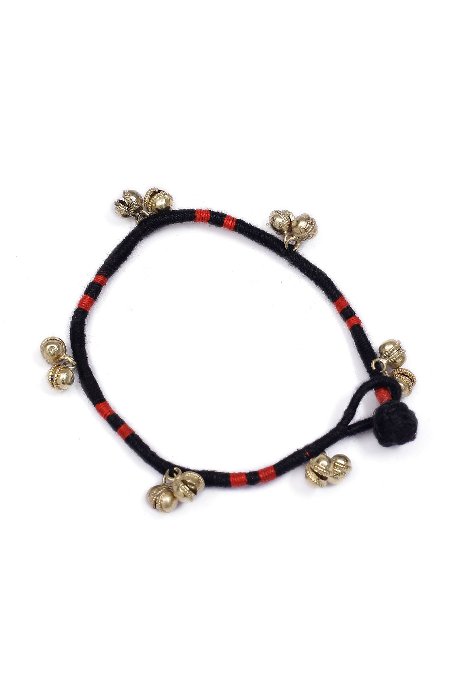 Stunning anklets that feature strands of gold finish beads hanging from read woven cotton thread. Inspired by the tribal jewellery of India, these German silver anklets will dress up any outfit in seconds Note: Size may vary as these are Hand-made. Dimension In Inches: L: 8 inches Dimension In Centimeters: L: 20 cm Weight: Anklet- W- 11g