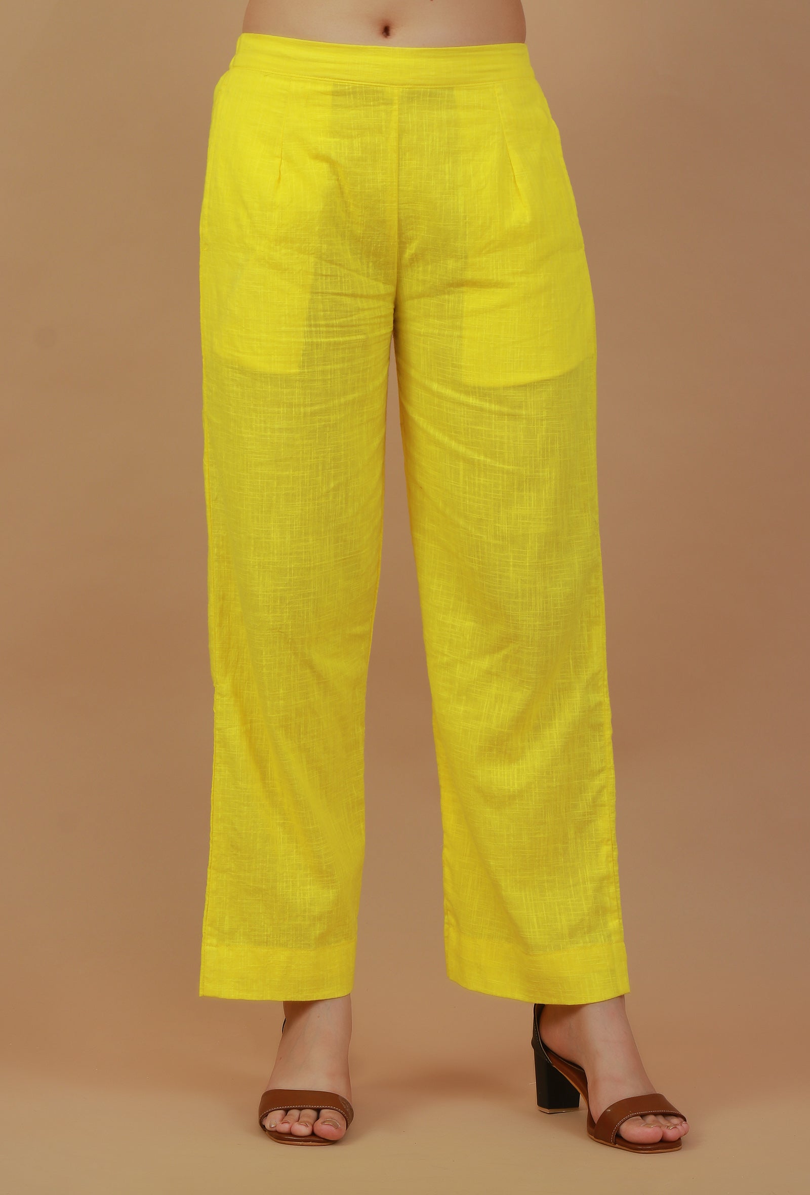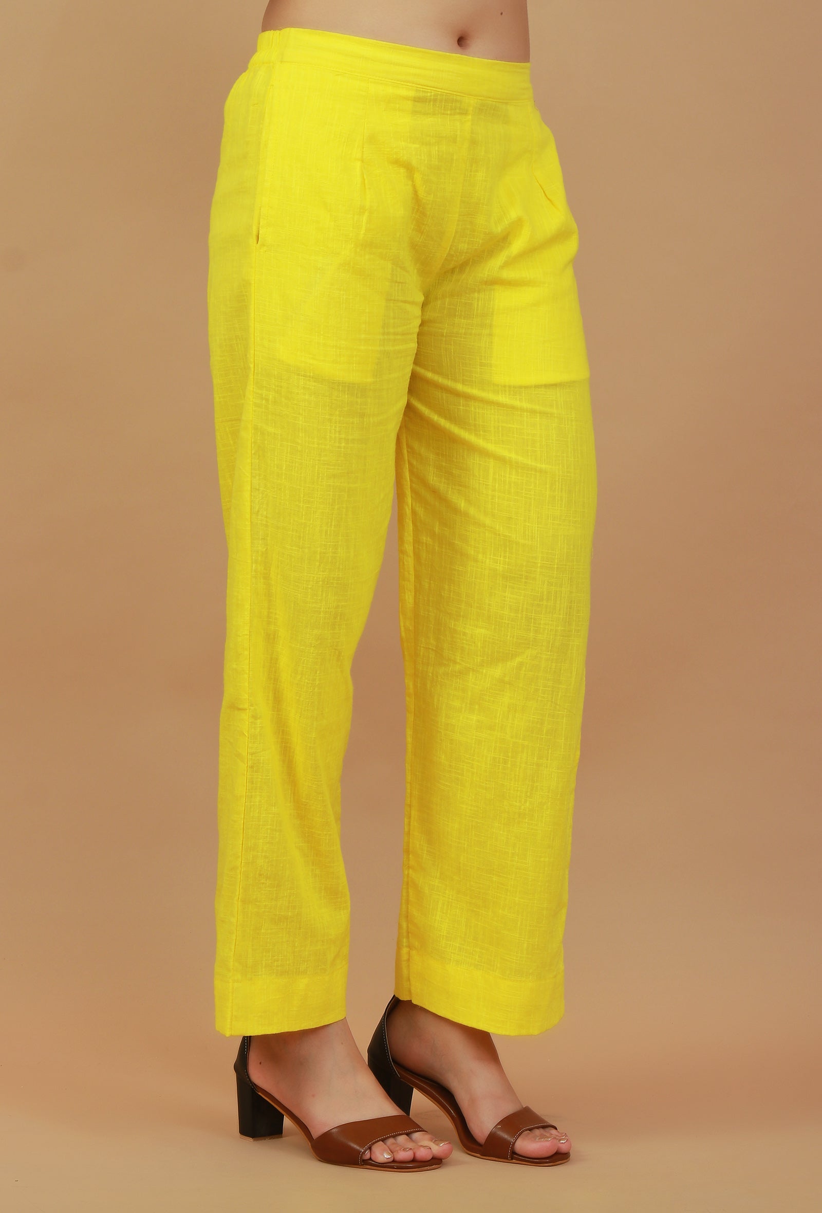 Solid Yellow Straight Cotton Pants