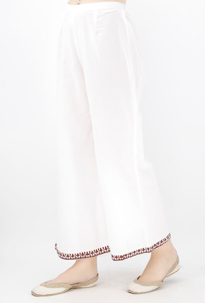 Adorned with a rich handblock olive chevron print, this palazzo is perfect to create a minimal, sophisticated look. It has fine zari detailing to enhance the beauty of the print. The pure cotton fabric makes this set breathable and comfortable.