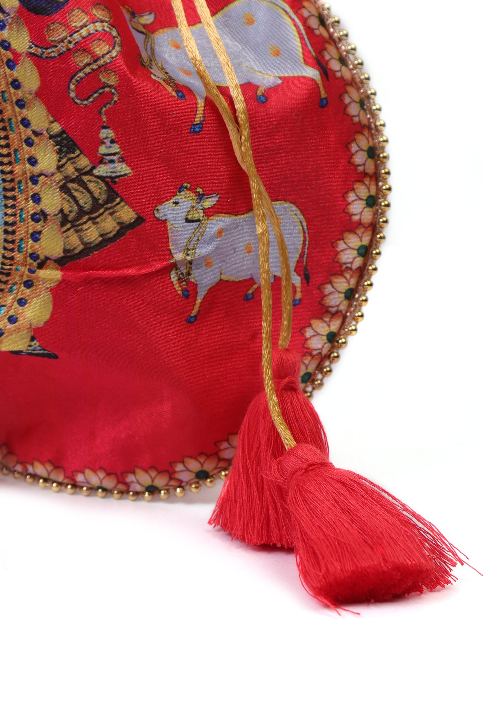 Luminous Red Shreenath Potli With Golden glass work