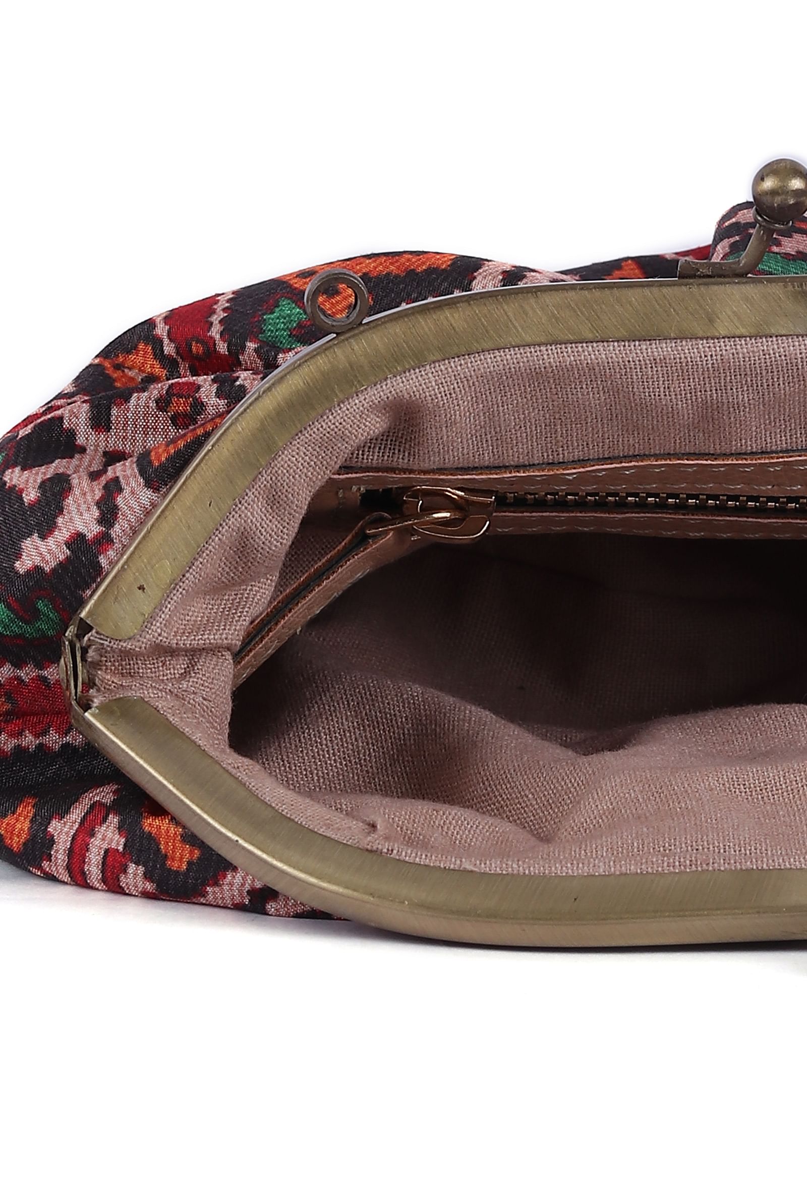 Green, Red & Multi Silk Patola Print Gathered Clutch