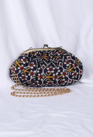 Golden & Multi Silk Patola Print Gathered Clutch