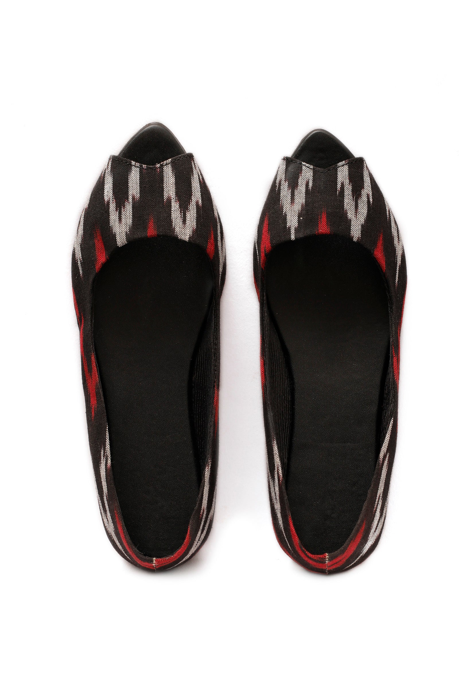 Black Ikkat Cruelty Free Leather Flat Ballerinas