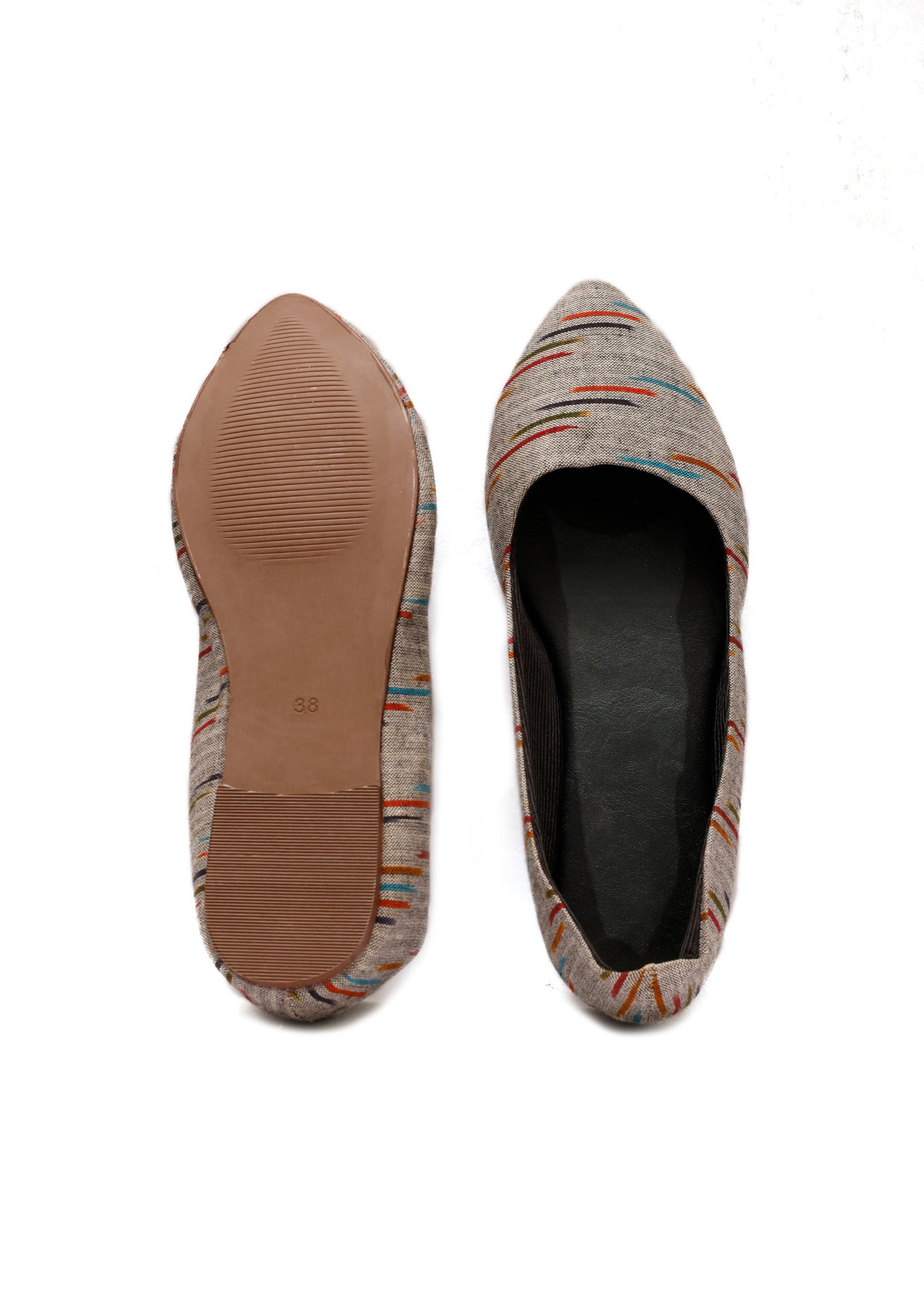 Super comfortable & Stylish. Our ikkat closed flats throw a royal finish onto these beauties. Nail the look when you style them under white pants or a pastel dress. It features cushion padded comfort.