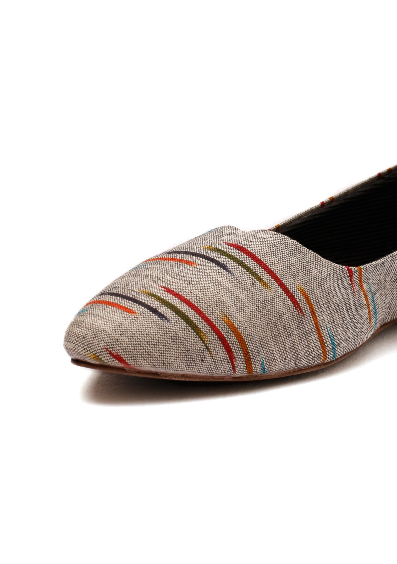 Grey Ikkat Cruelty Free Leather Flat Ballerinas