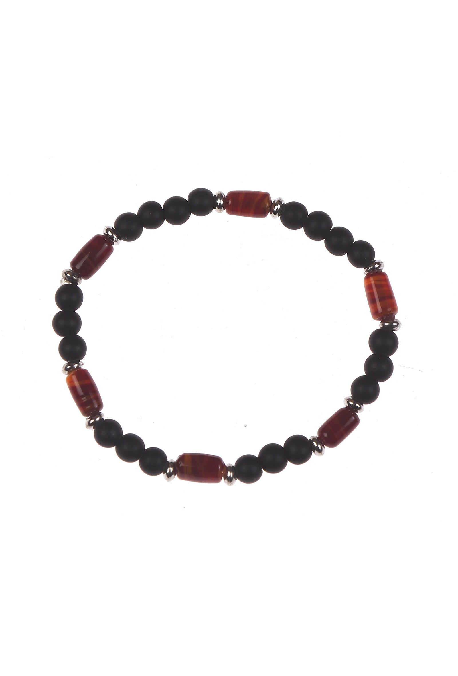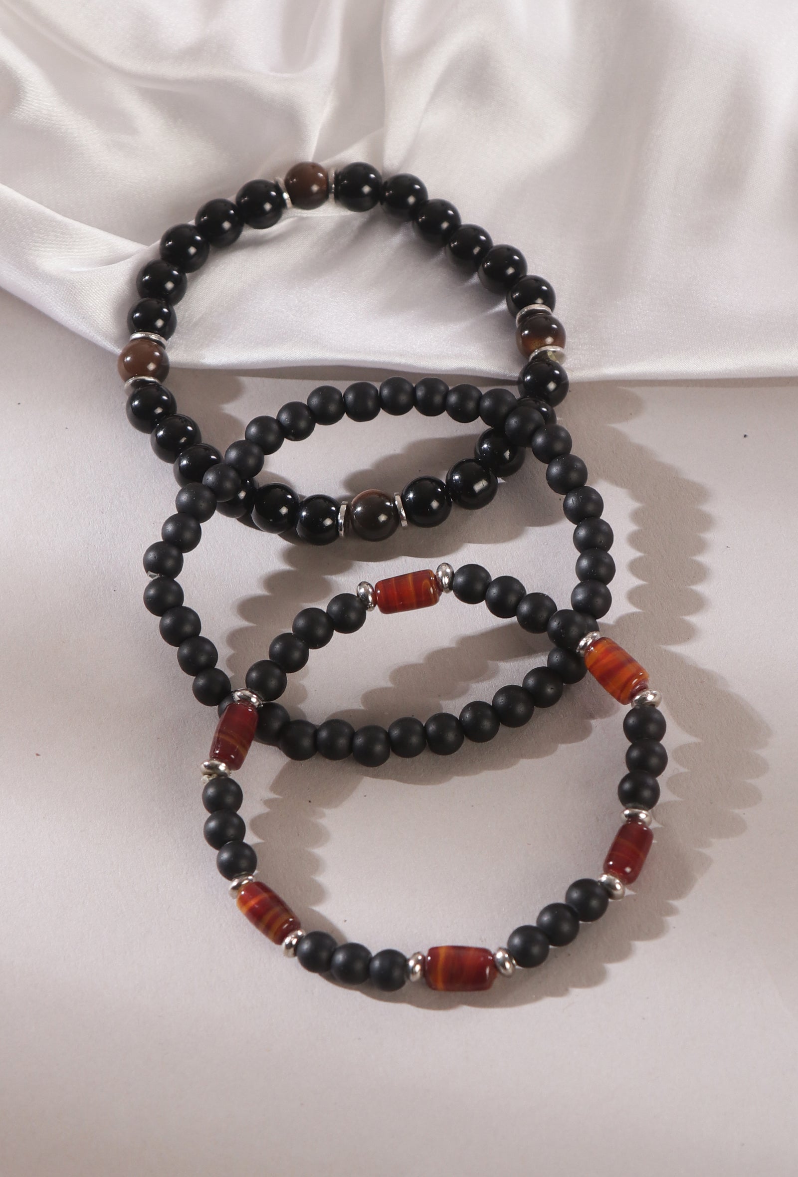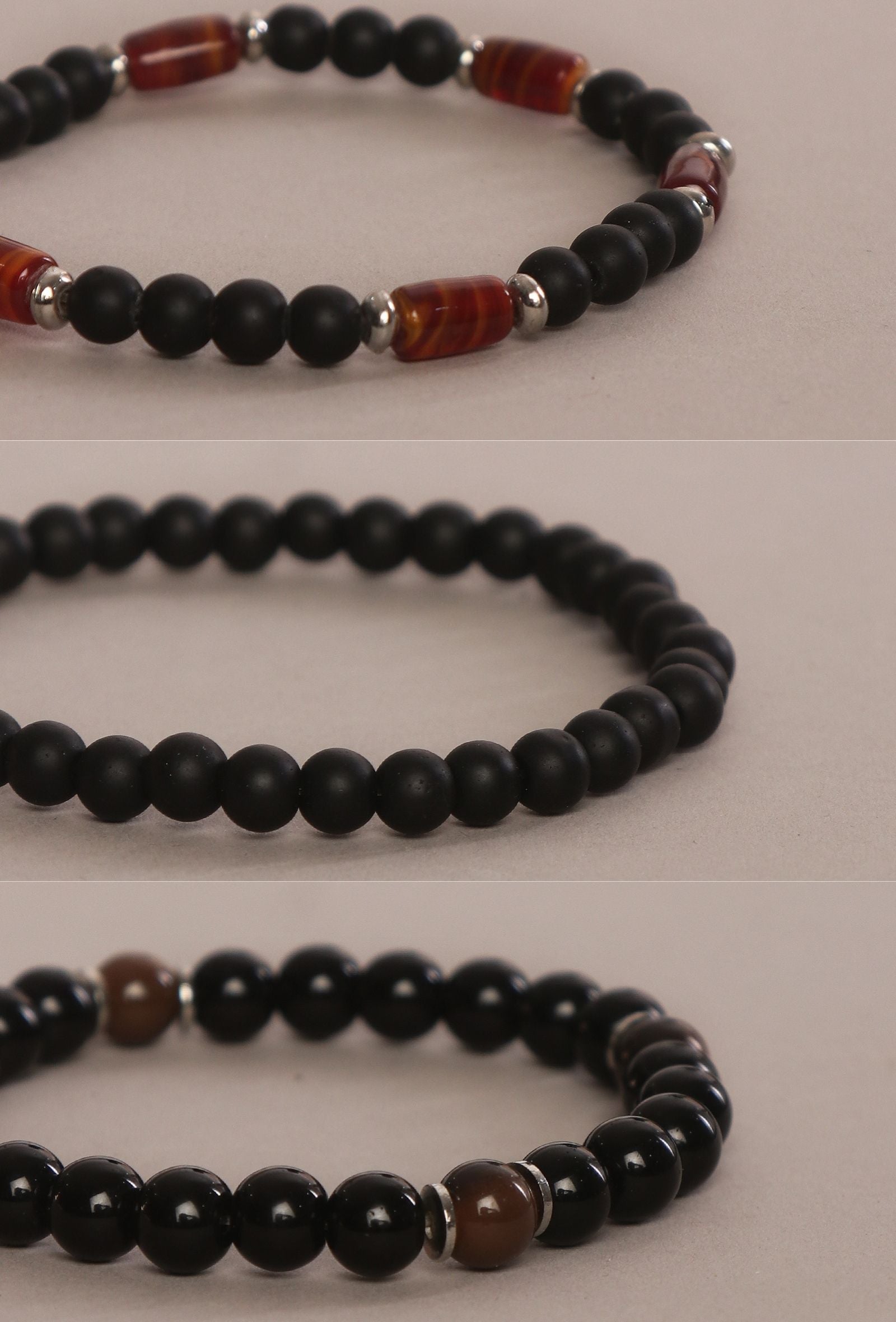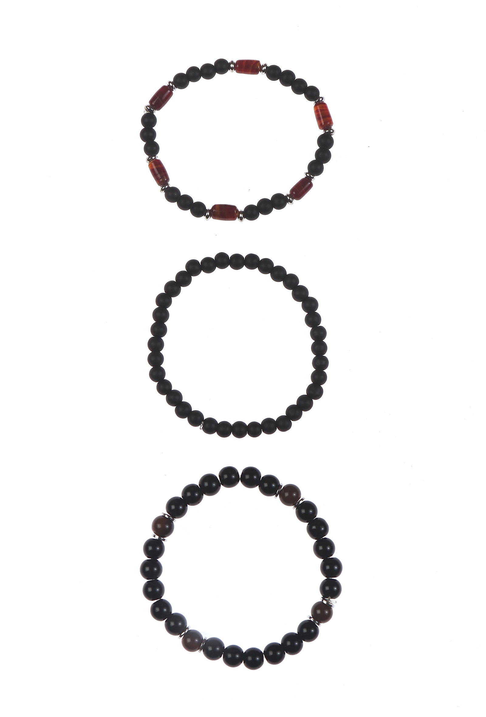 Matte Black Onyx Carnelian Agate & Black Agate Natural Stone Unisex Bracelets -Set Of 3