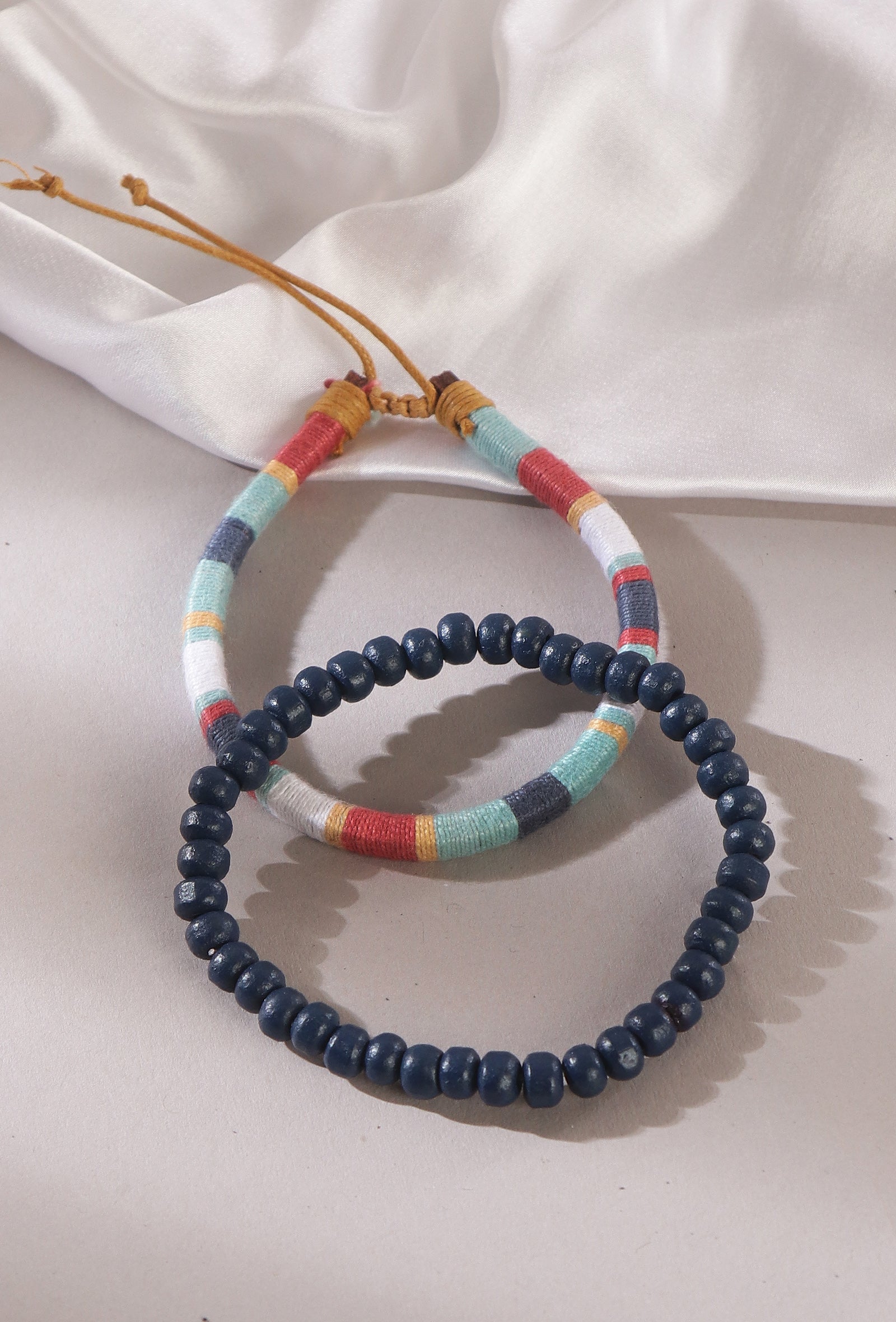 This bracelet duo features an urban bohemian cord design paired with midnight blue wooden beads—elements admired for their earthy textures and relaxed style. Blending modern urban fashion with boho-inspired details, this bracelet set offers a versatile unisex accessory perfect for everyday wear and effortless layered looks.