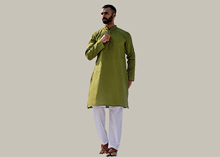 Look your ethnic best wearing this solid Moss Green coloured kurta for men. Made from finest cotton cambric, this regular fit kurta comprises of mandarin collar with front placket, Pocket on front with handstitched details and Full sleeves, to complete...