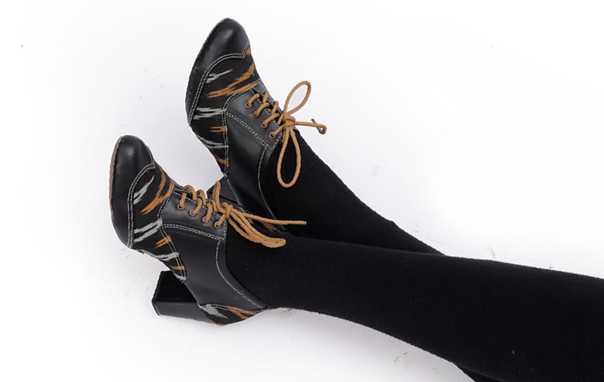 Black & Caramel Brown Ikat One toe Cruelty Free Leather Flats