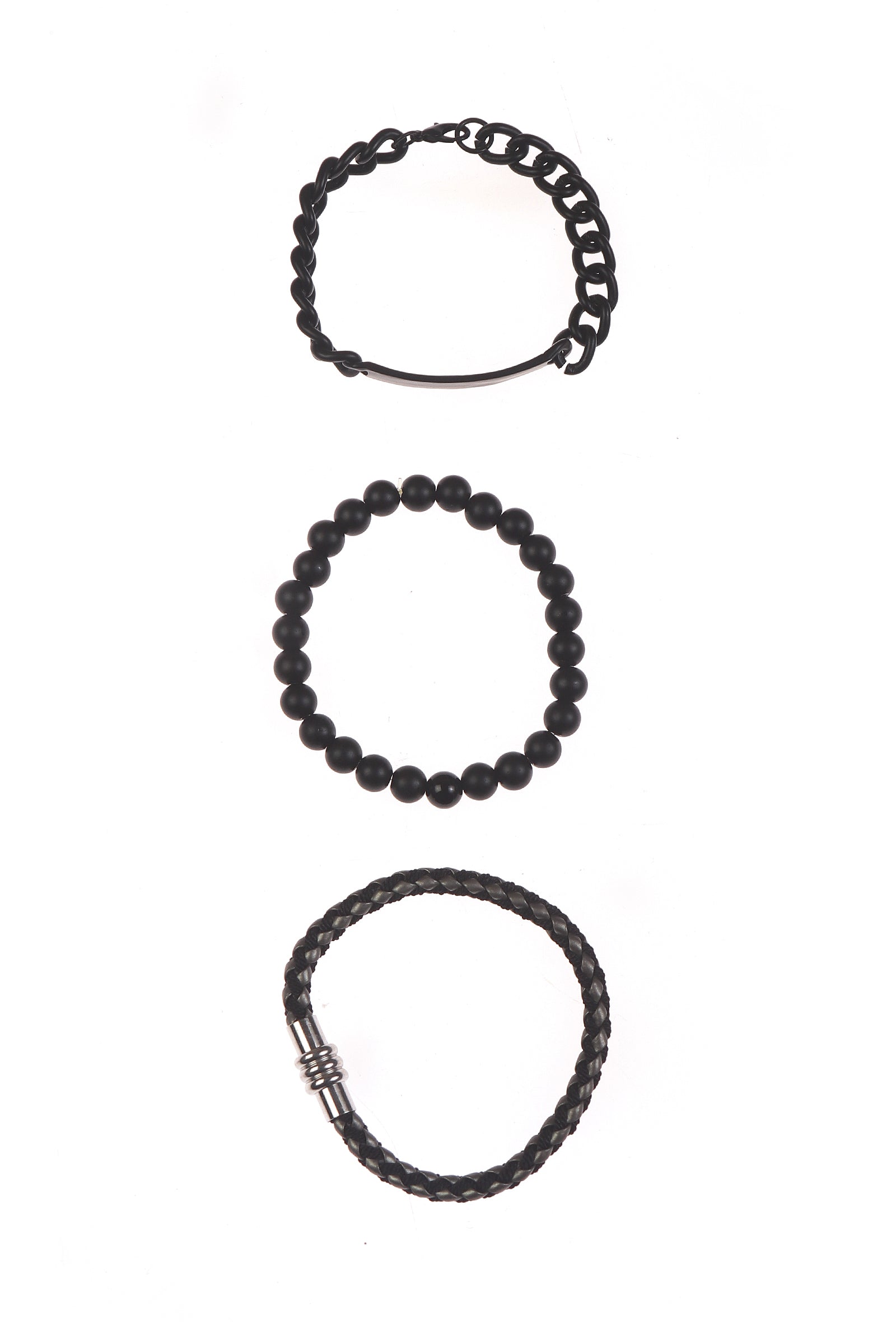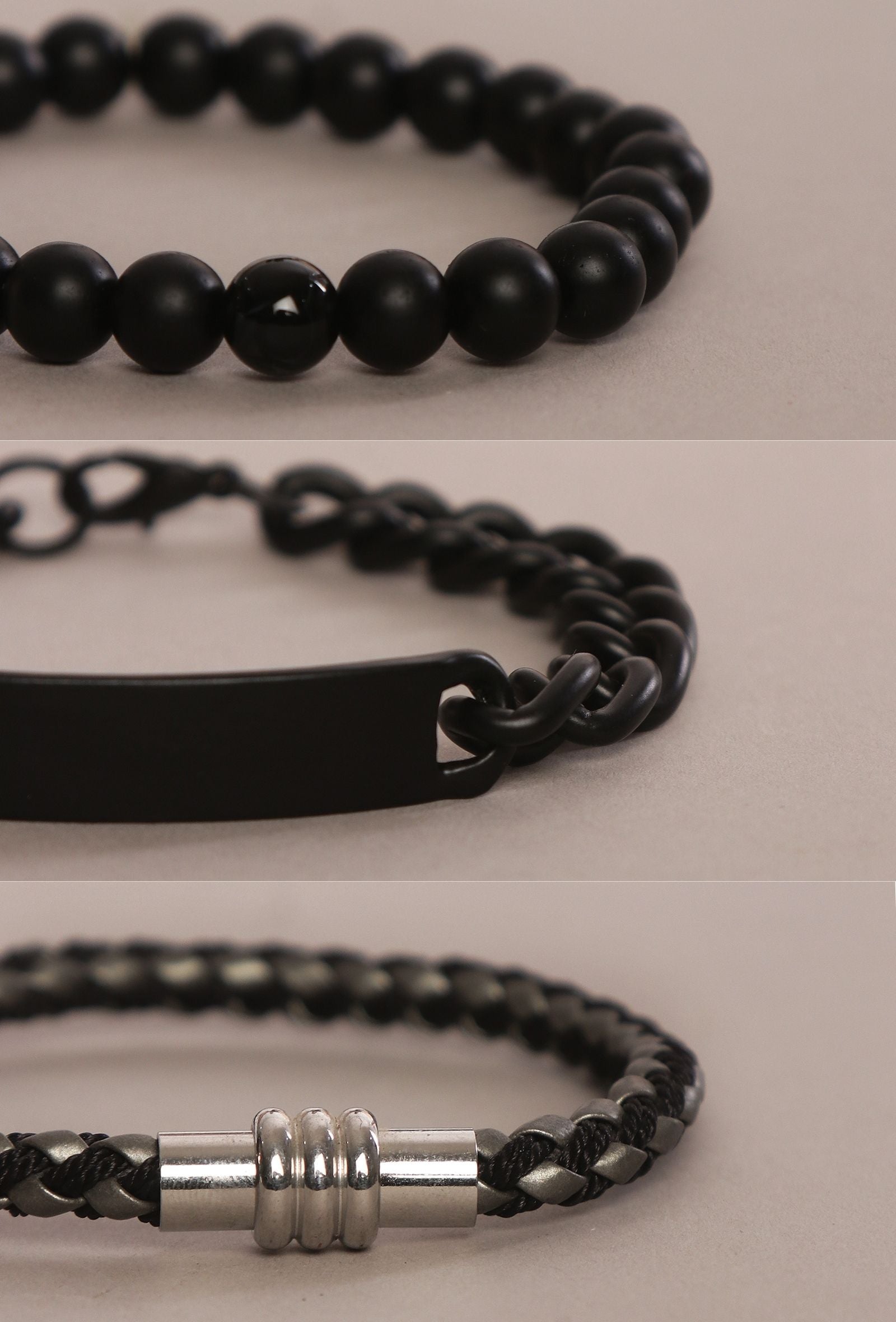 Black Onyx ID Chain Magnetic Clasp Bracelet Set of 3