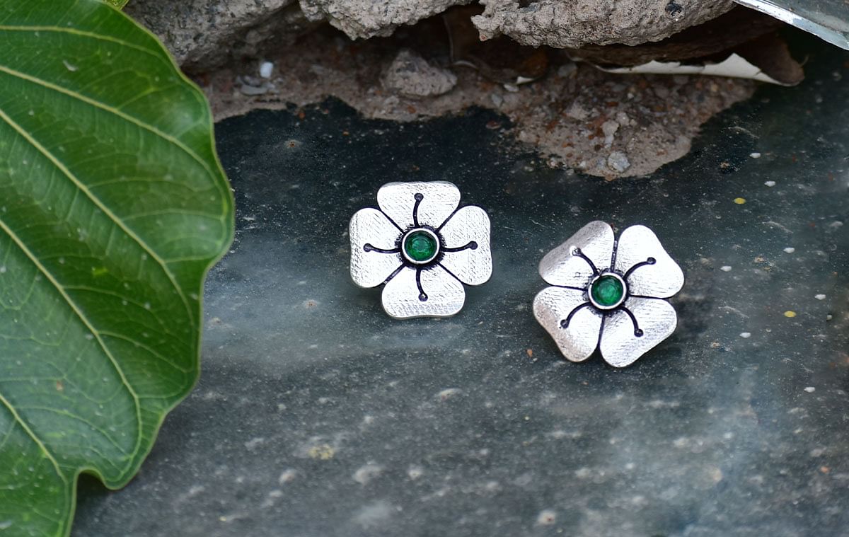 This pair of lotus earrings comes with a rose red stone. Crafted from brass, it comes with silver plating. The pair of earrings come with push hooks that help to wear them with ease. You can team them with any...