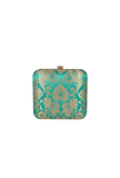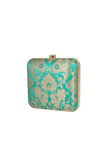 Emerald Green Brocade Box Clutch with Sling (6.5 X 2 X 6)
