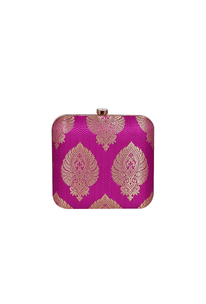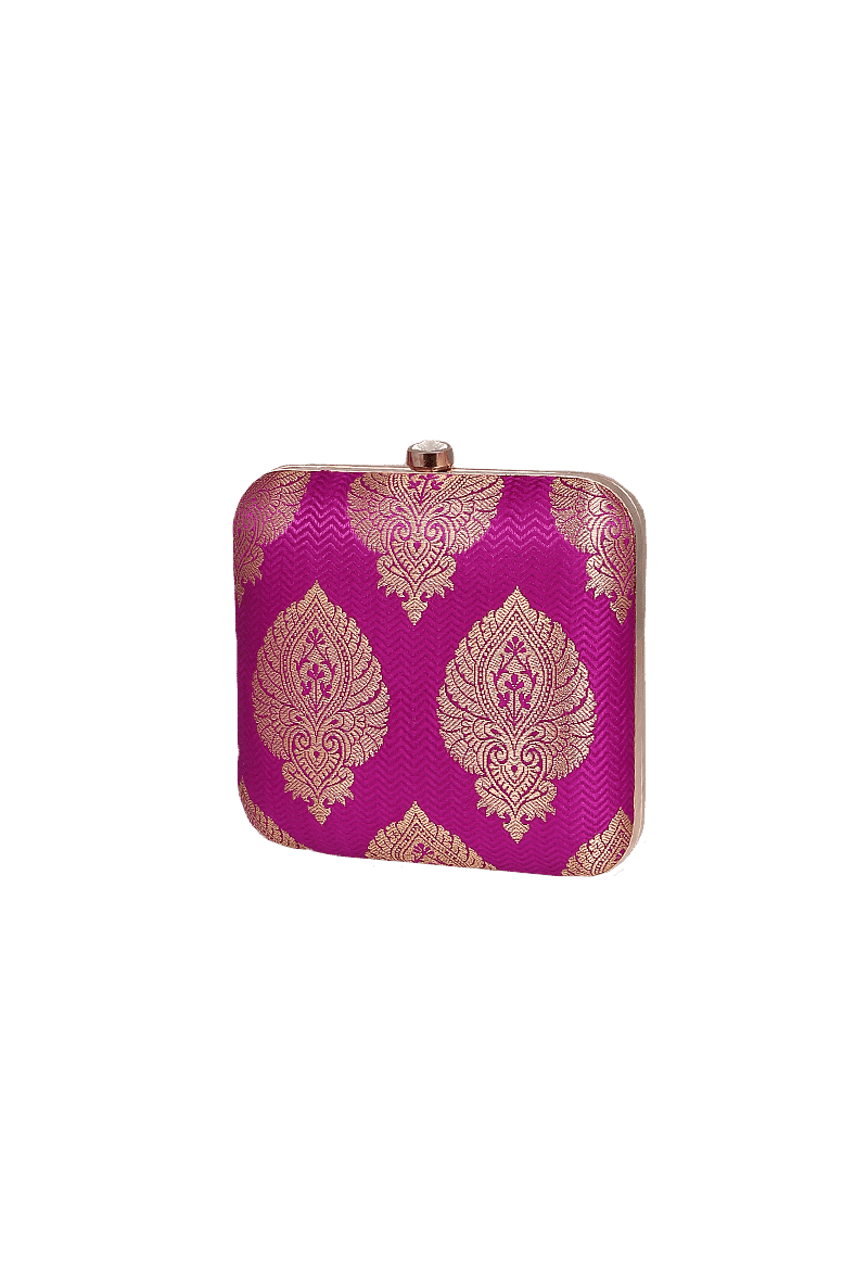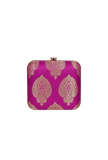 Magenta Brocade Box Clutch with Sling (6.5 X 2 X 6)