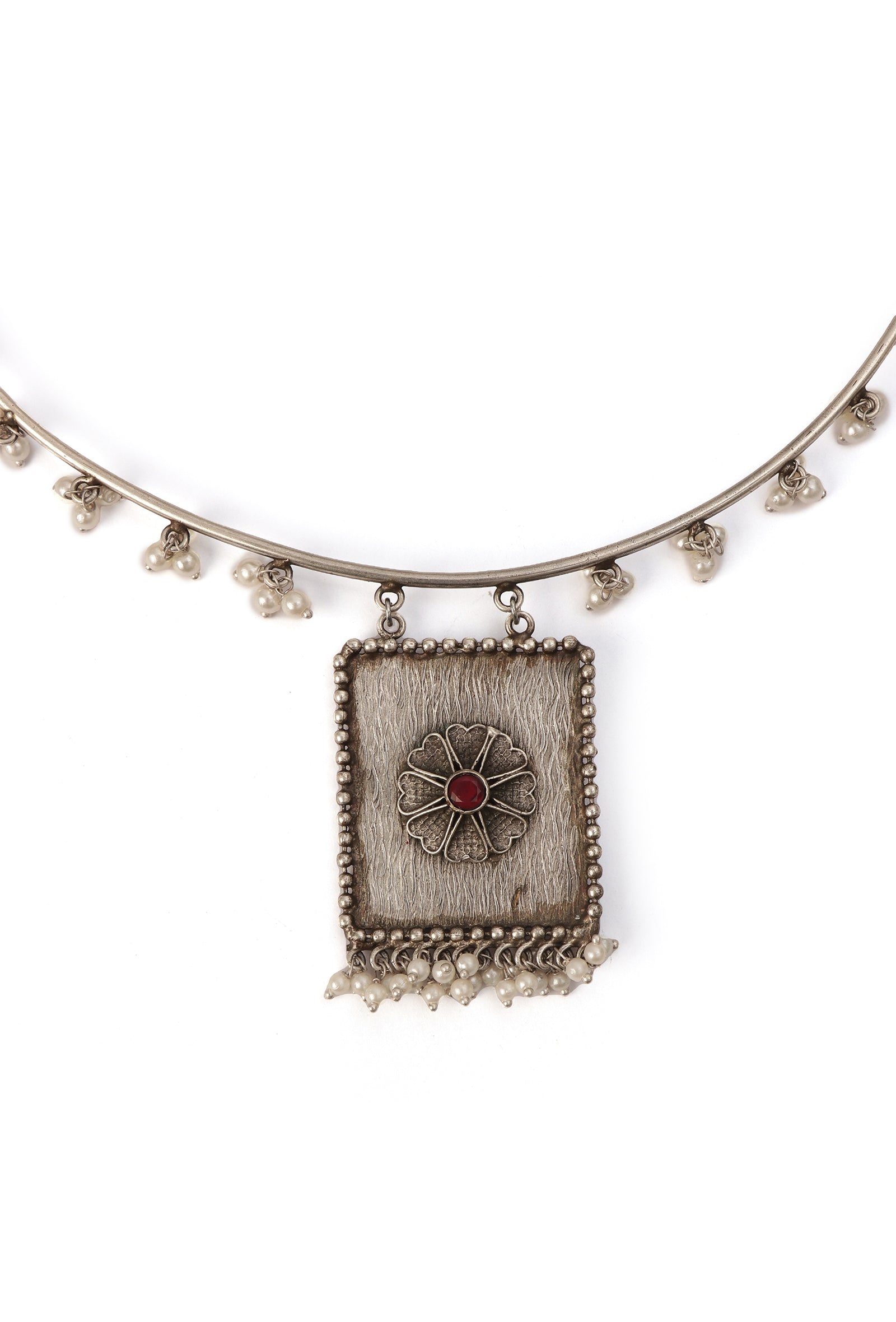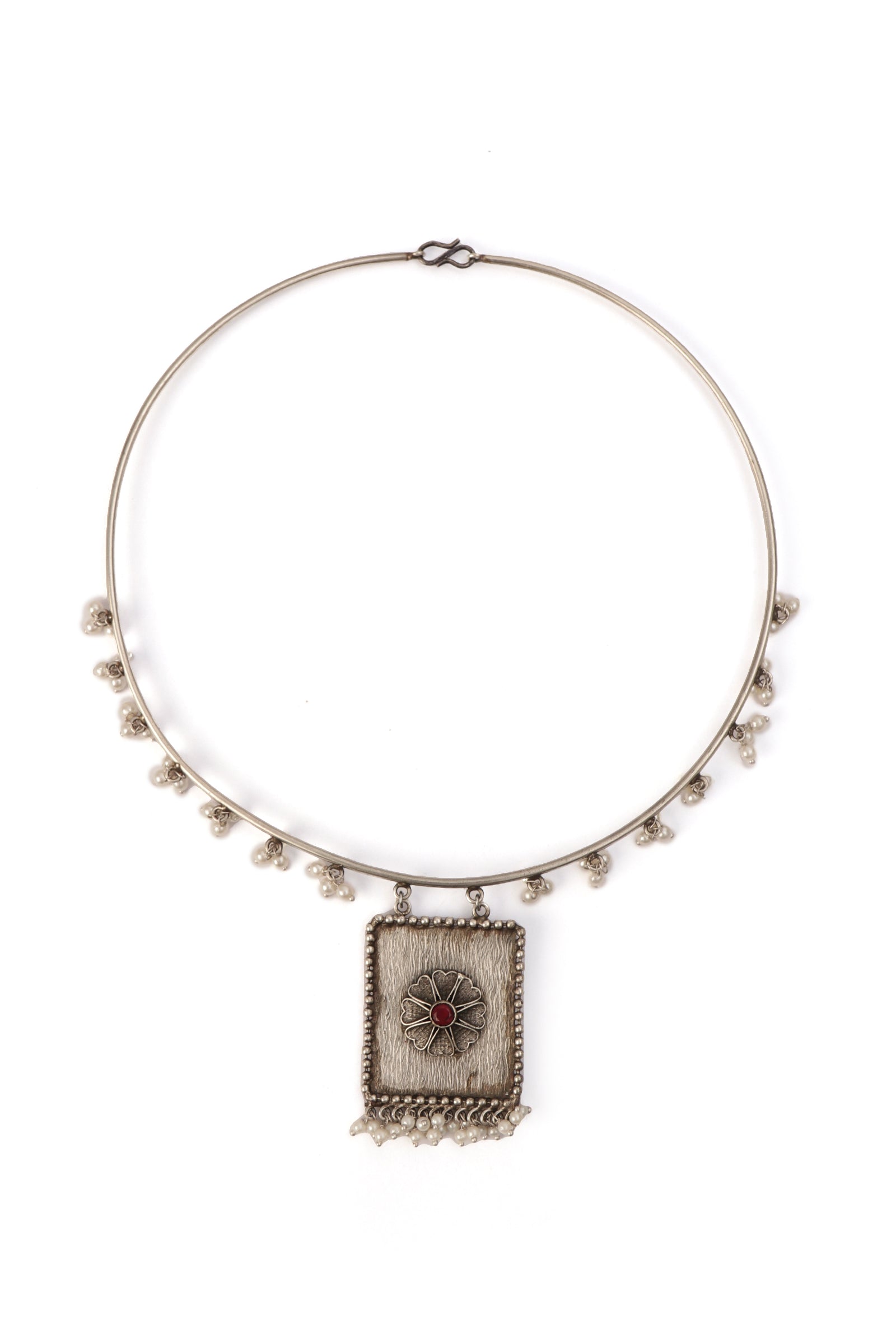 Enhance your look with our Elegant Oxidized White Bead Hasli. This exquisite necklace features a sophisticated oxidized finish adorned with delicate white beads, blending traditional craftsmanship with timeless elegance. Perfect for adding a touch of grace to any ensemble.