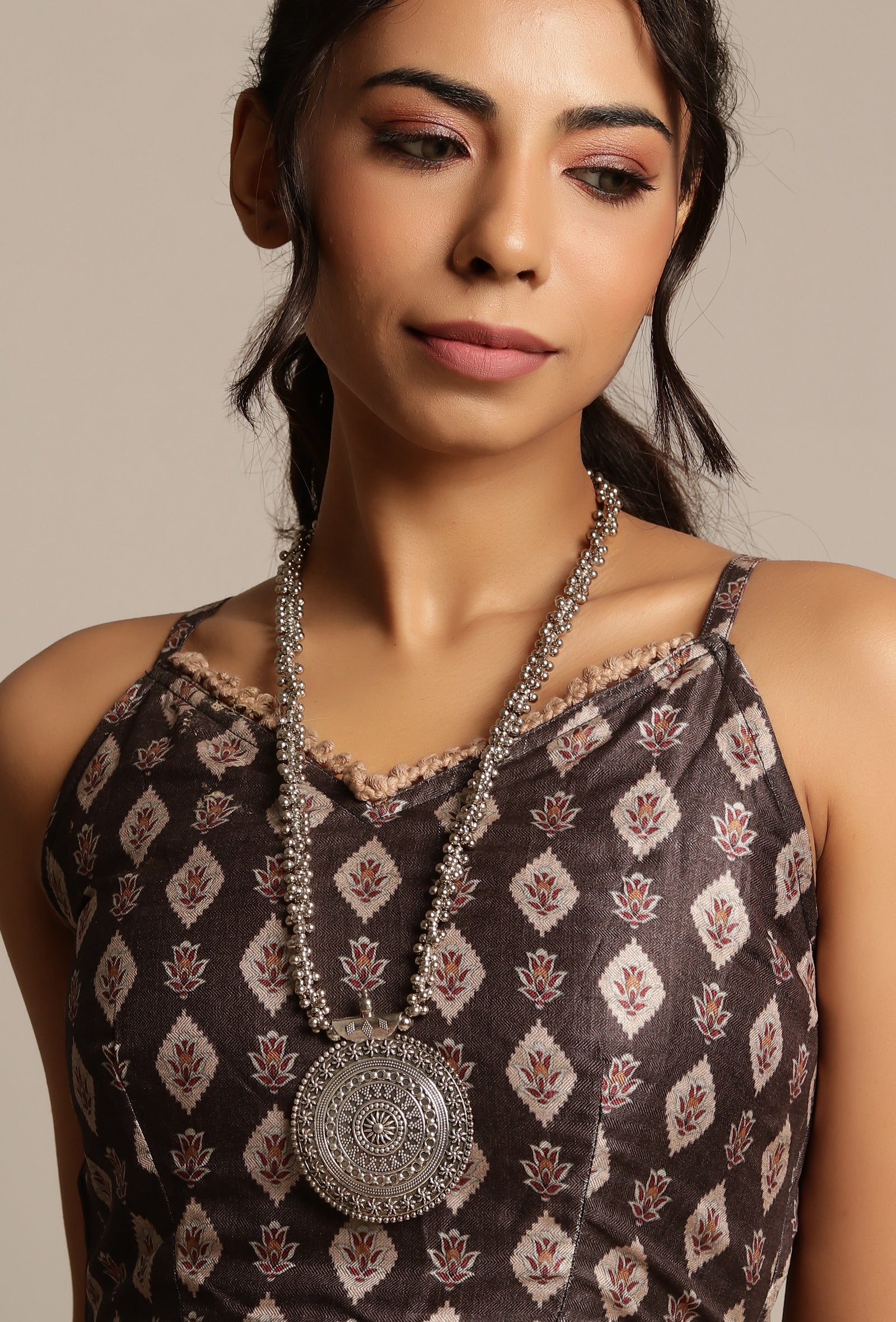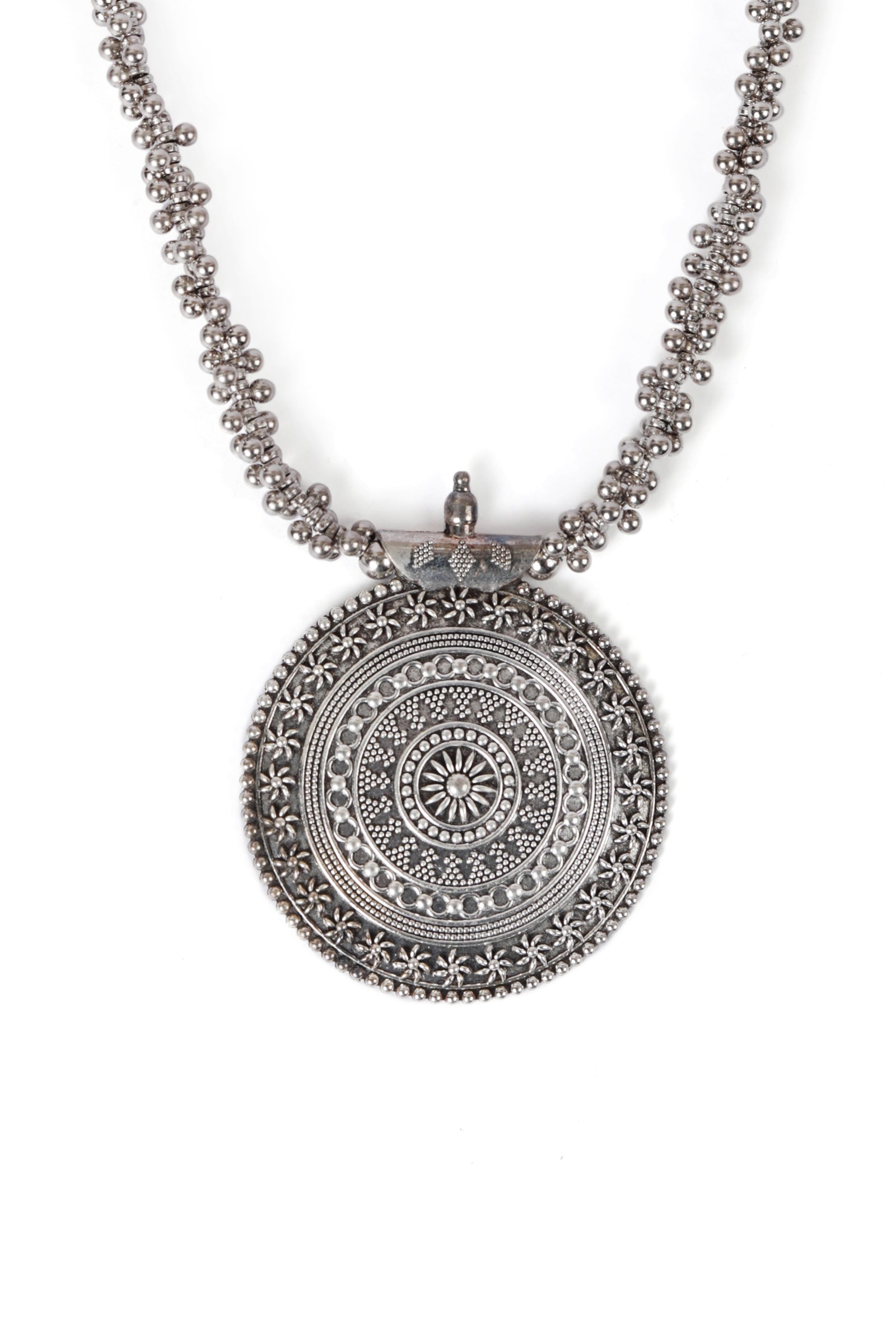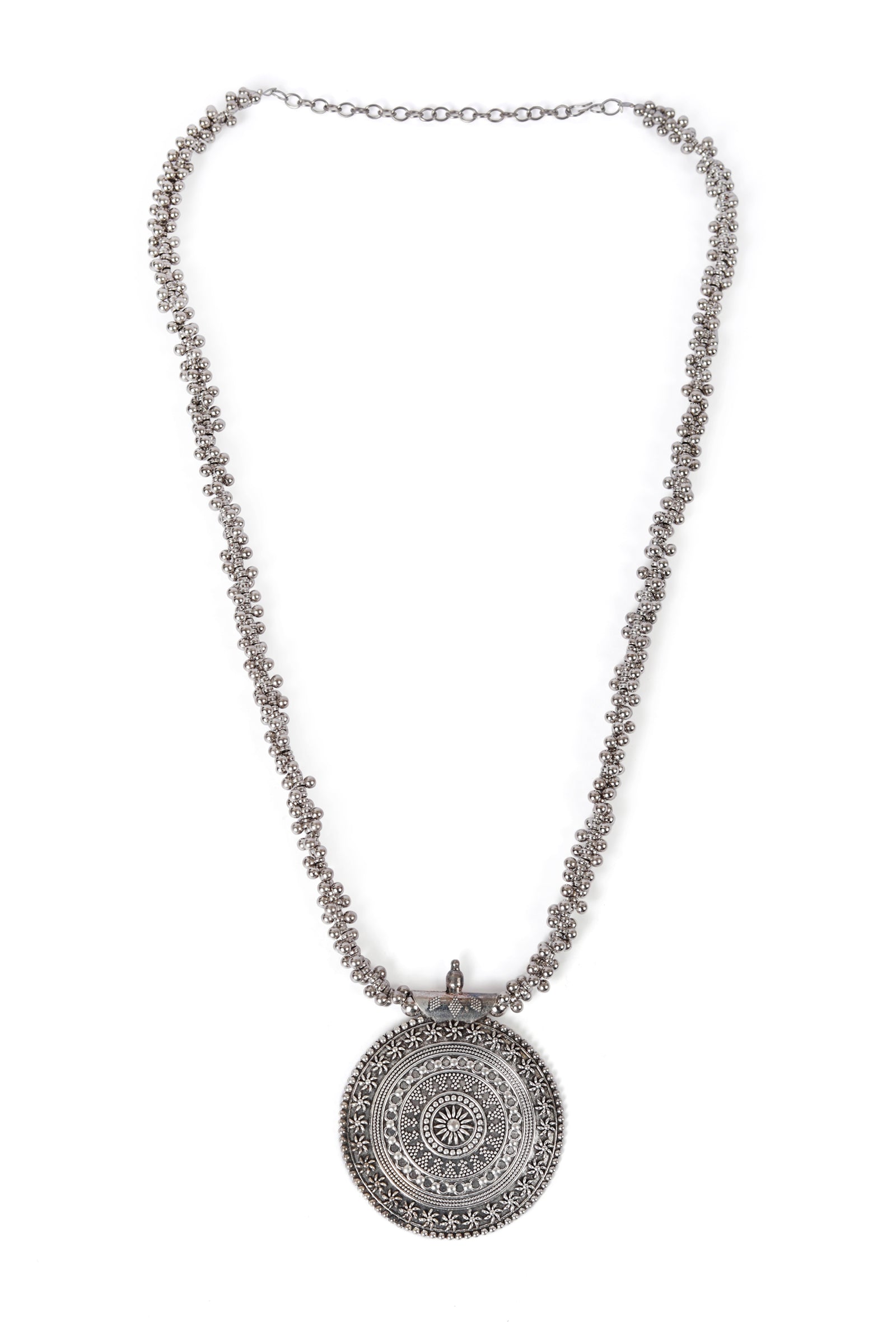 German Silver Designer Long Chain Ghunghru Bead Round Pendant