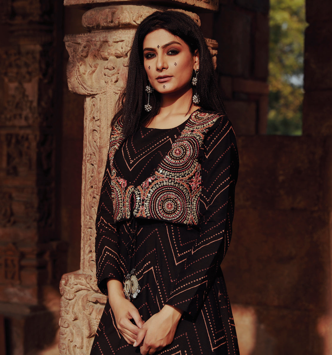 Rediscovering the indigenous textiles of Gujarat Our Spring 21 collection (Ghoomar) is inspired by The Banjara and Gudri crafts of Kutch. Reviving the Lambani or the Banjara embroidery in a contemporary way, which has been delicately used in our garments with intricate prints that remind us of traditional Bandhej craft. The collection is an amalgam of pattern darning, mirror work, cross-stitch, hassling, overlaid, and quilting stitches, made with fine cotton blends. An overall trendy yet stylish look, which can be worn beyond 9 to 5.