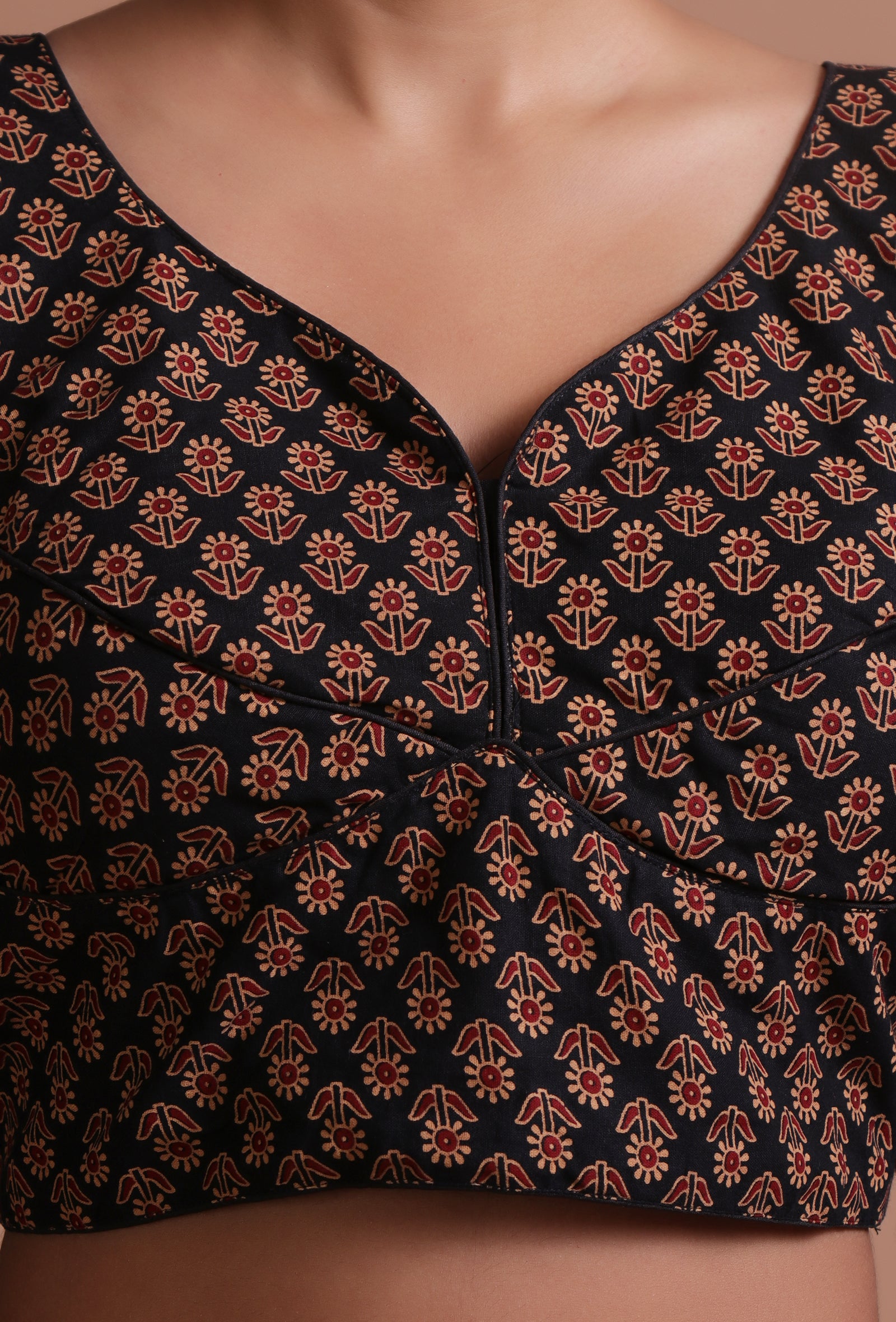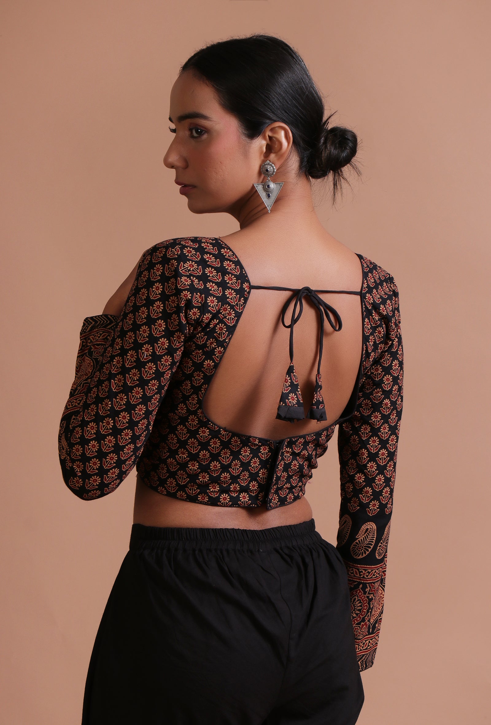 Black Cotton Ajrakh Printed Full Sleeve Blouse