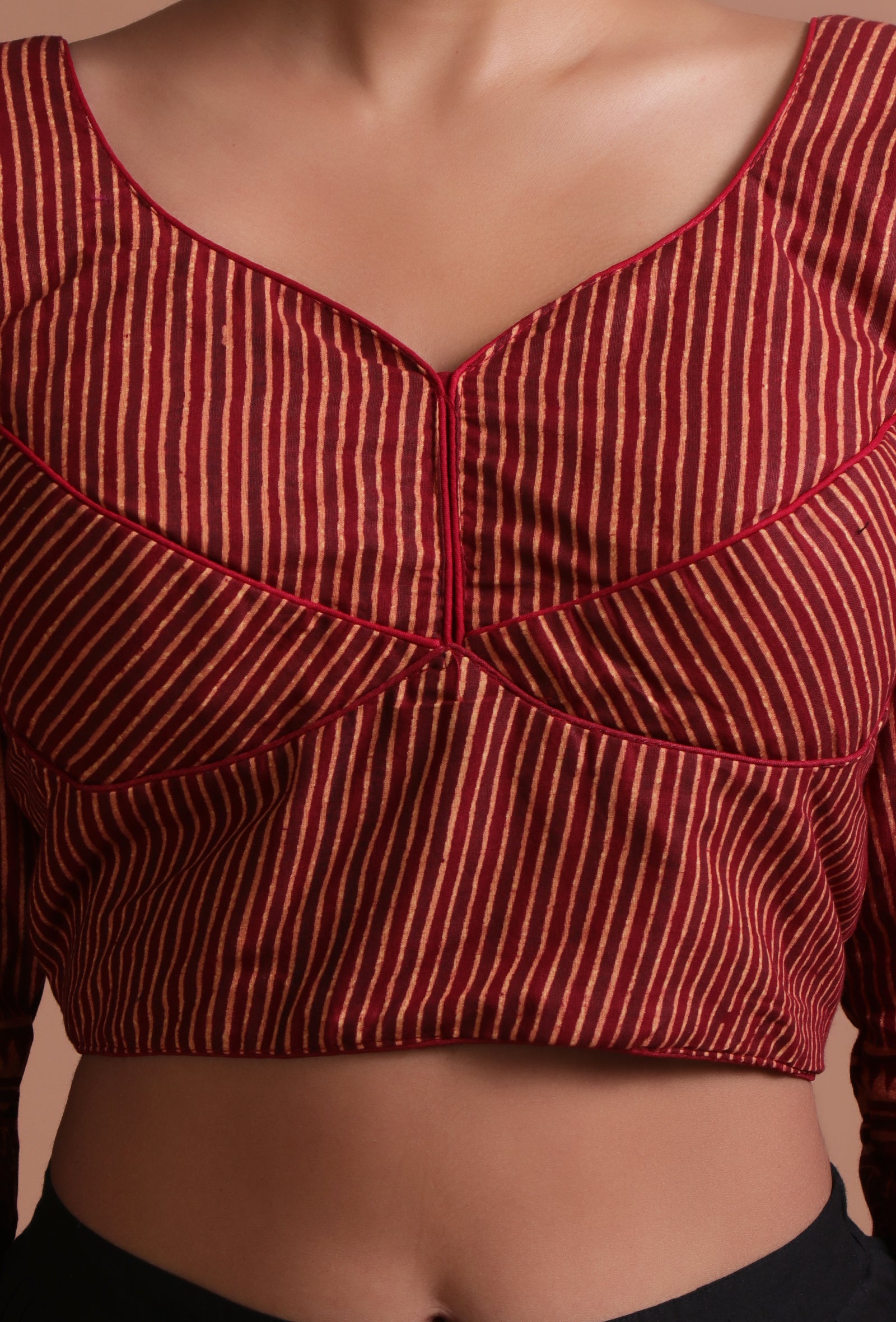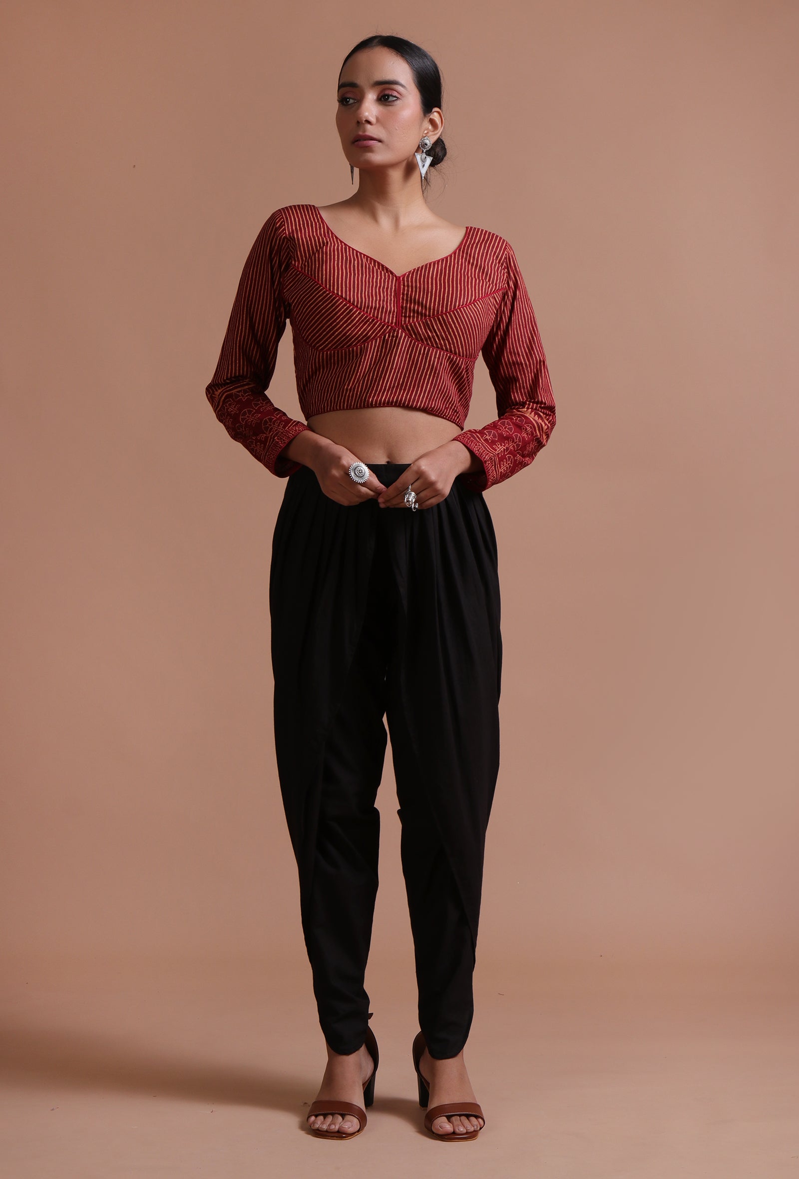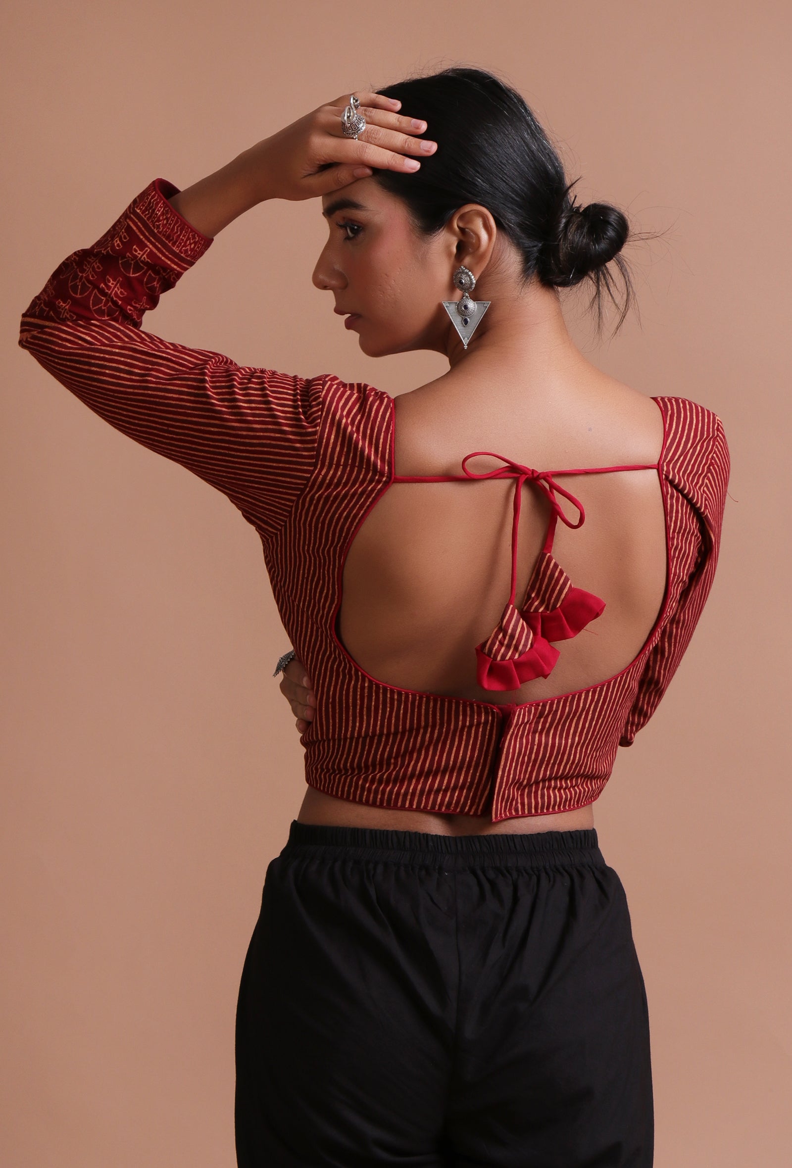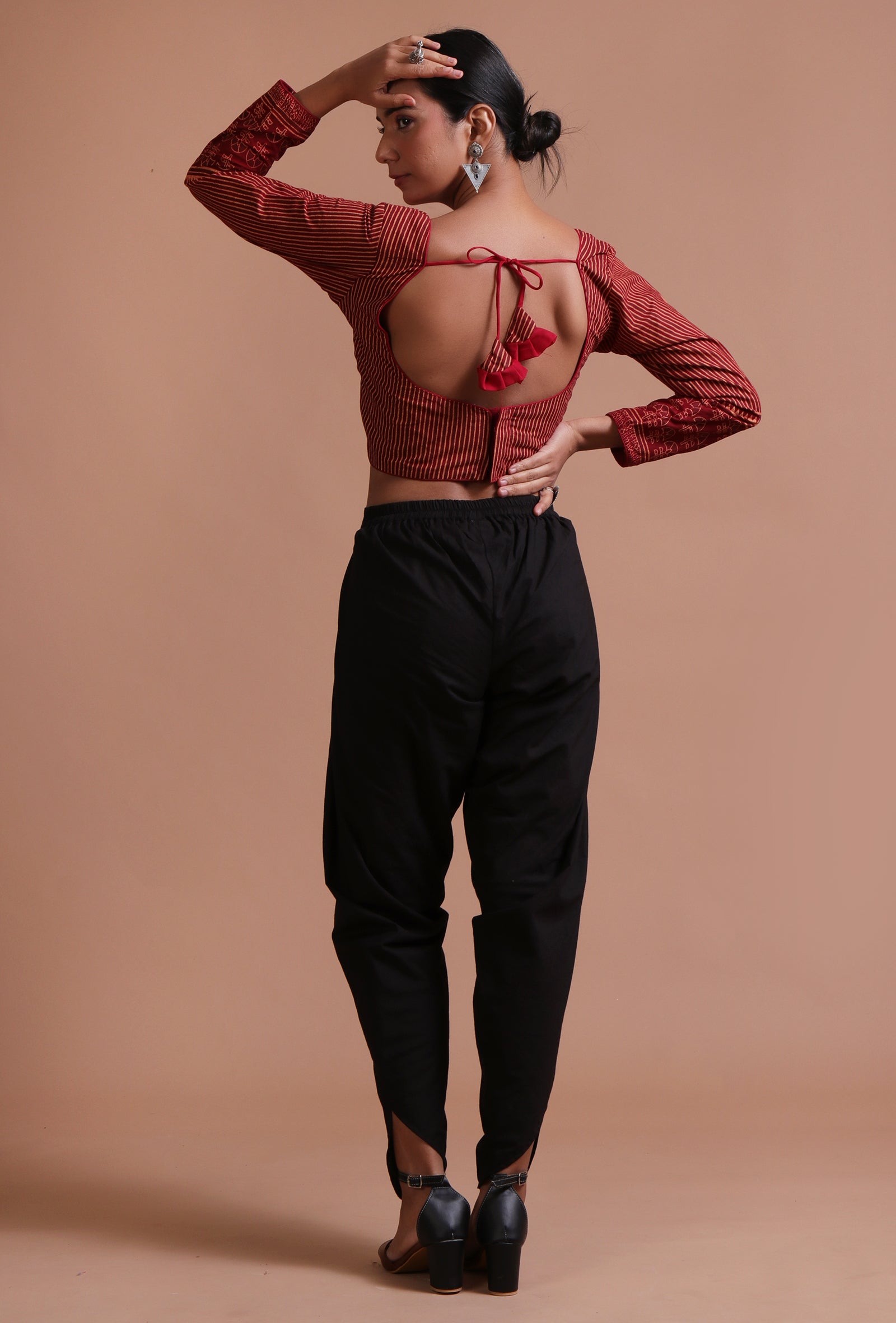 Black Cotton Ajrakh Printed Full Sleeve Blouse