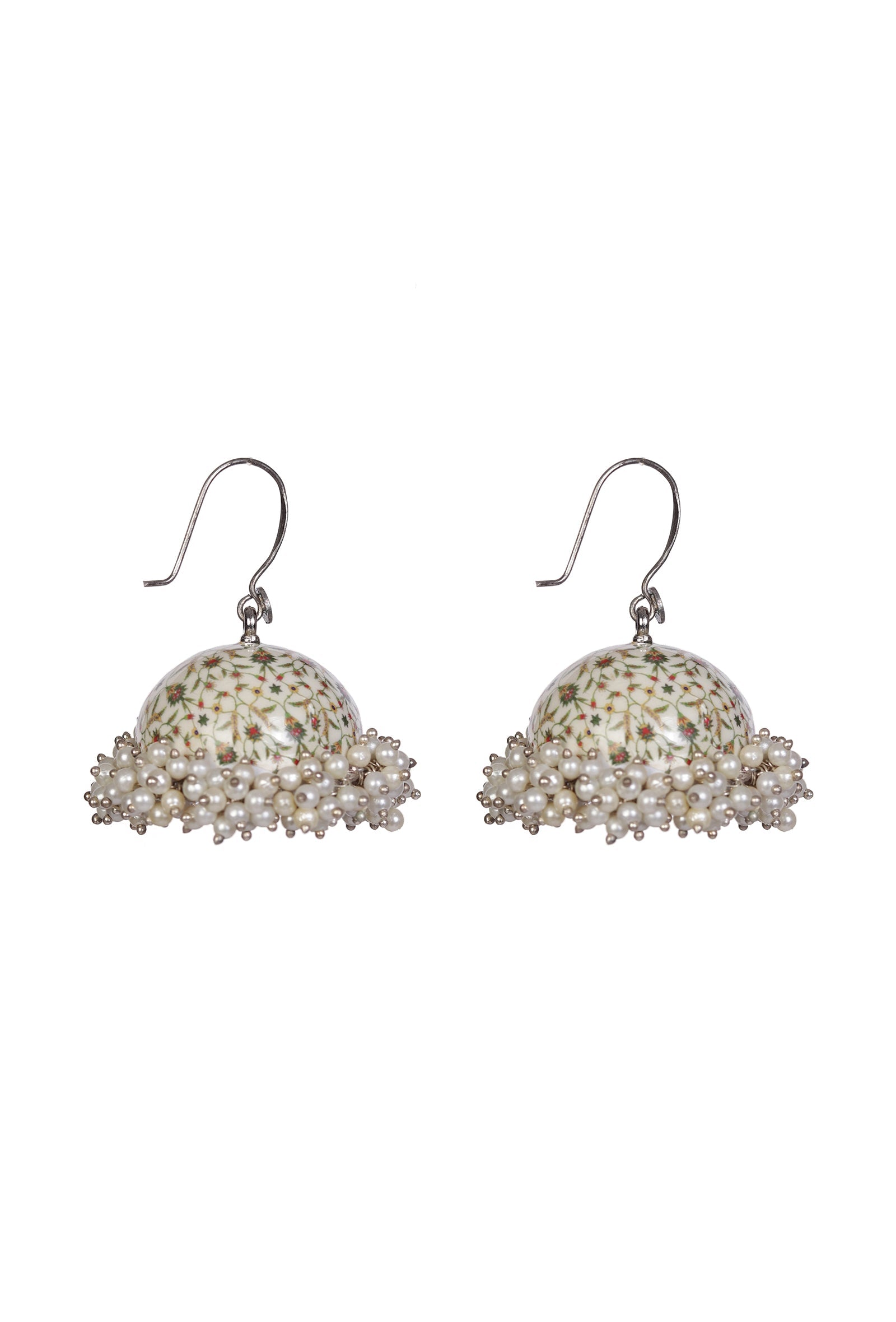 Elevate your style with Royal Mughal Pearl Jhumkas, inspired by the grandeur of Mughal artistry. Adorned with intricate designs and delicate pearl accents, these jhumkas exude timeless elegance, making them a perfect statement piece for weddings and festive occasions.