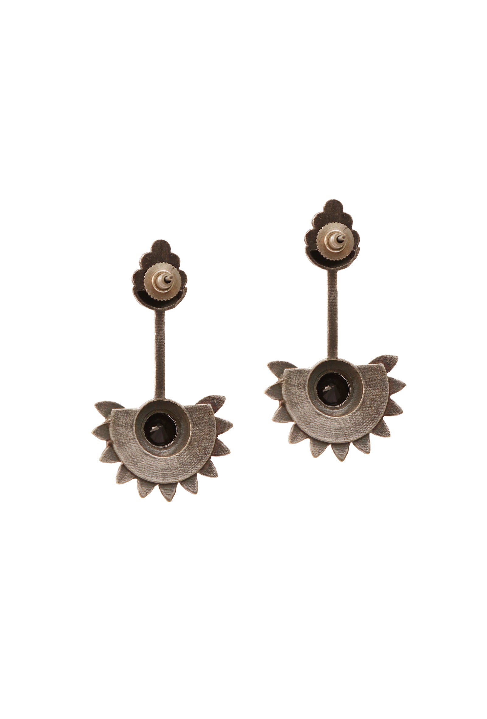 Introducing Sunlit Petals earrings. These brass oxidized silver sunflower earrings capture the radiance of a sunlit garden. Crafted with intricate detail, they add a touch of nature-inspired elegance to any ensemble, illuminating your style with their timeless charm.