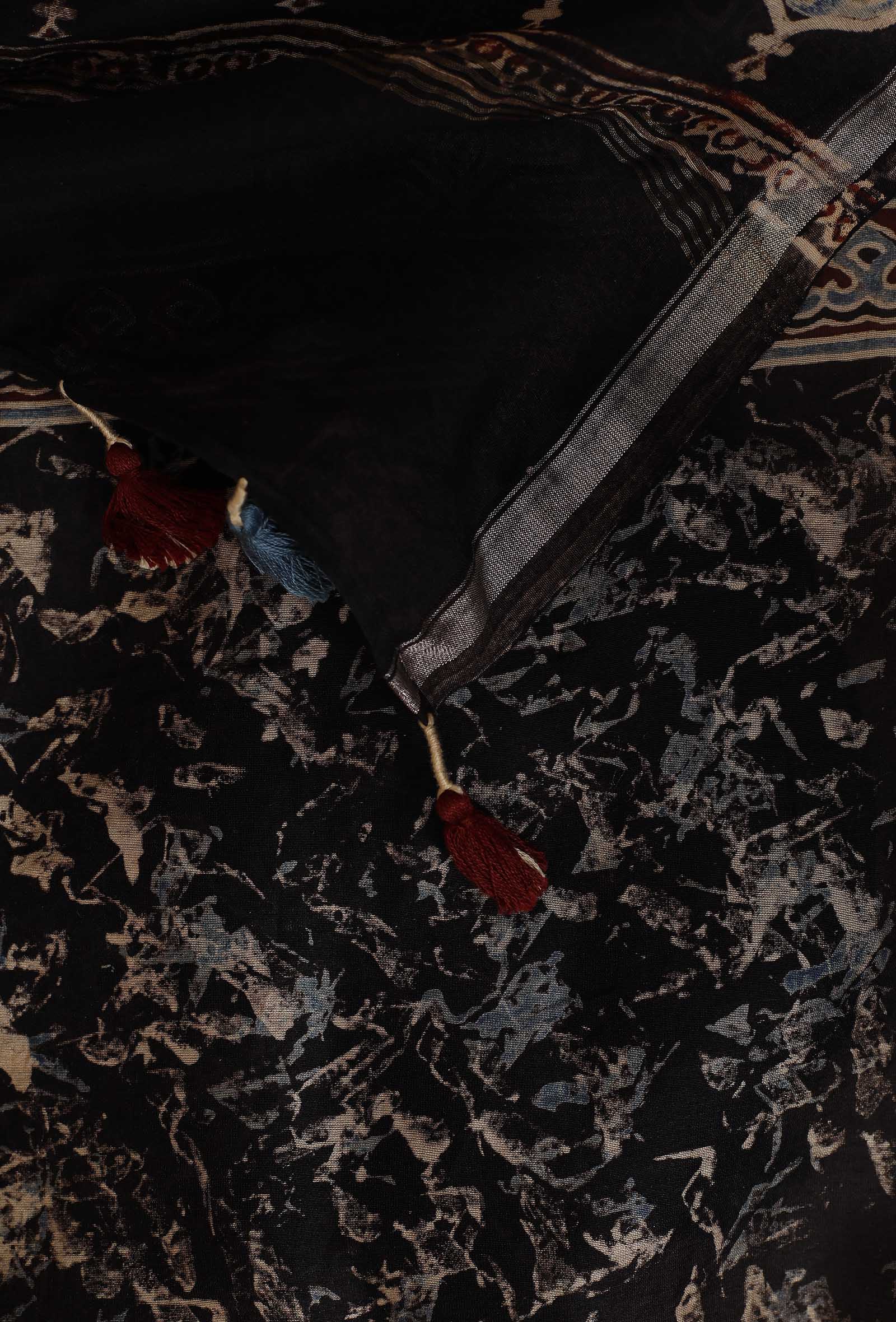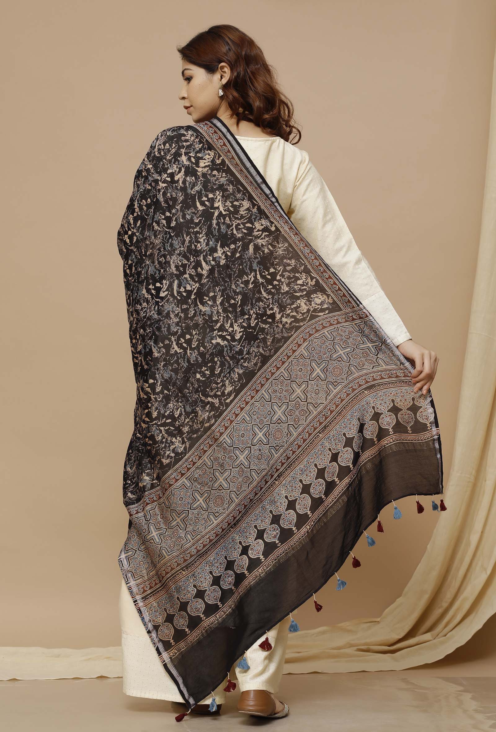 Black Shibori-Ajrakh Chanderi Silk Dupatta
