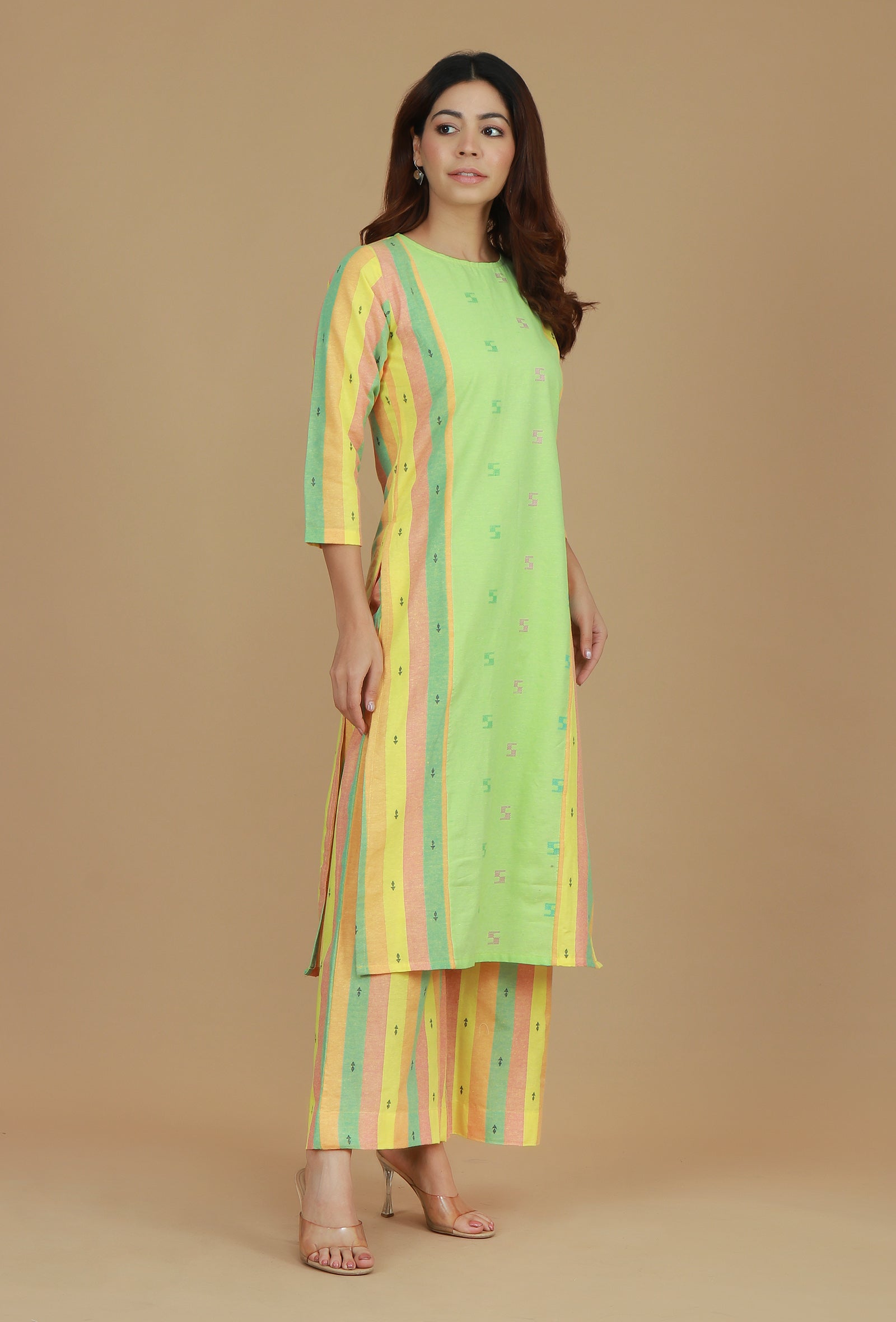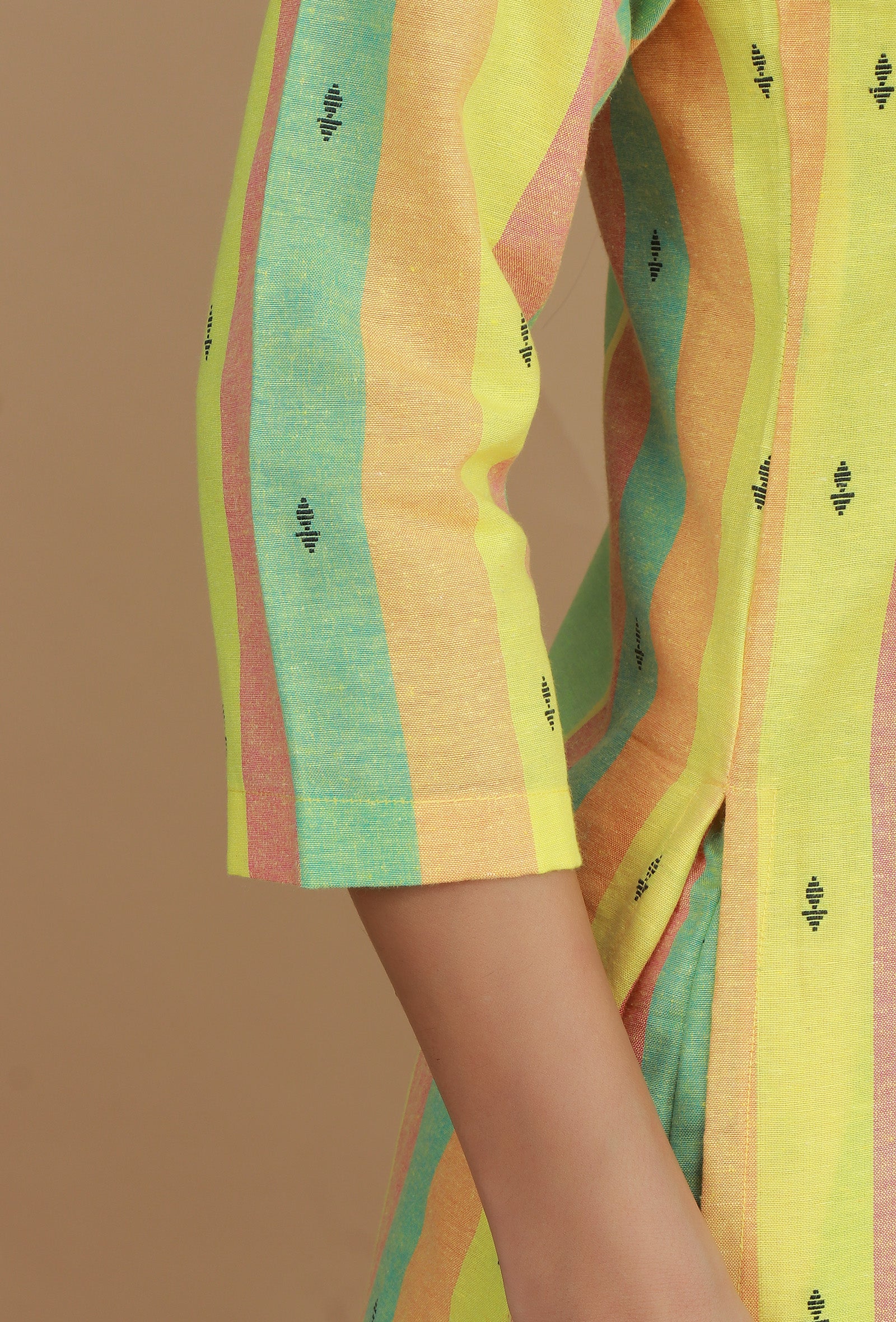 Lime Green & Yellow Striped Cotton Viscose Kurta