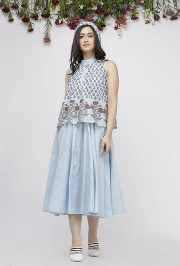 Cloud Grey Cotton & Sheer Brasso Organza Flared Dress