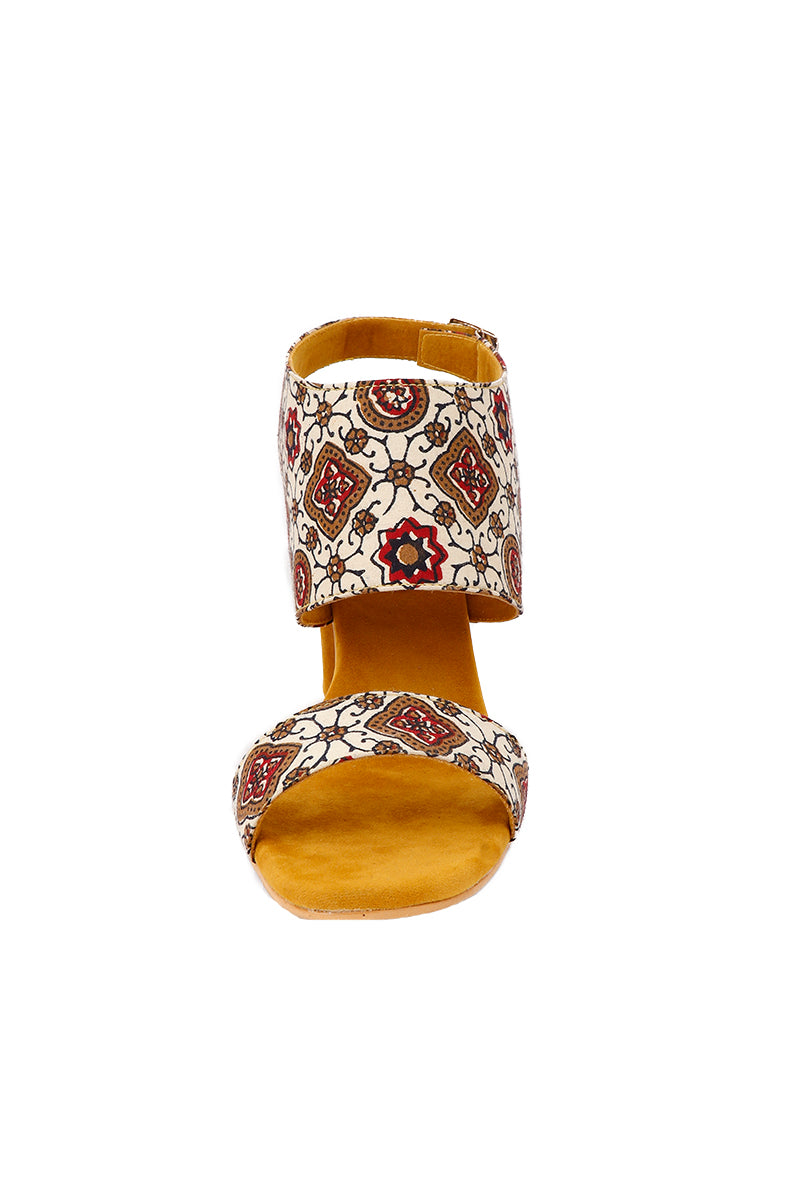 Honey Yellow Ajrakh Cotton Strappy Block Heels In Suede