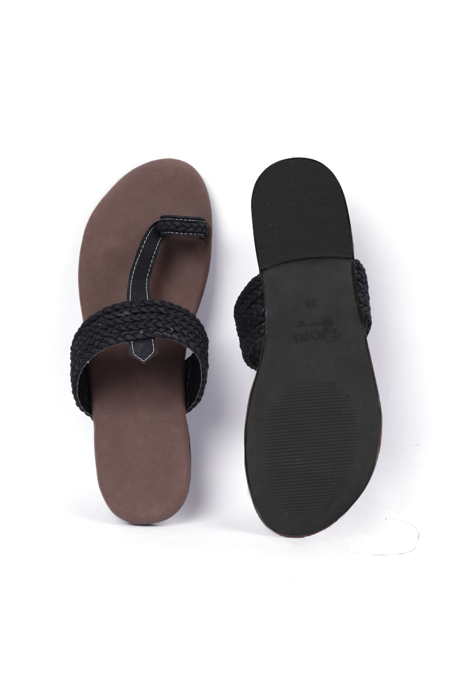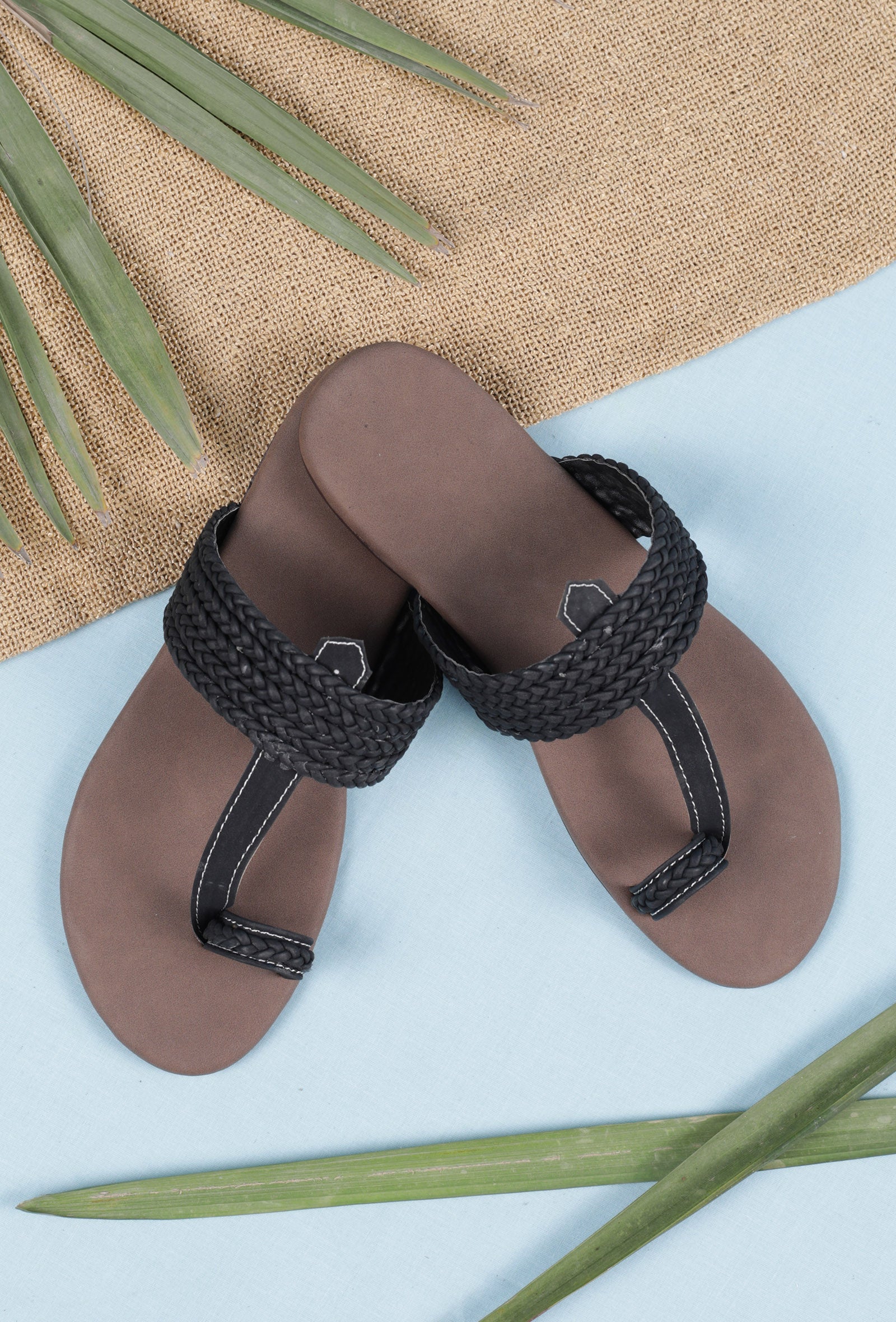 Brown and Black Cruelty free Leather inspired Kolhapuri with multiple braidings