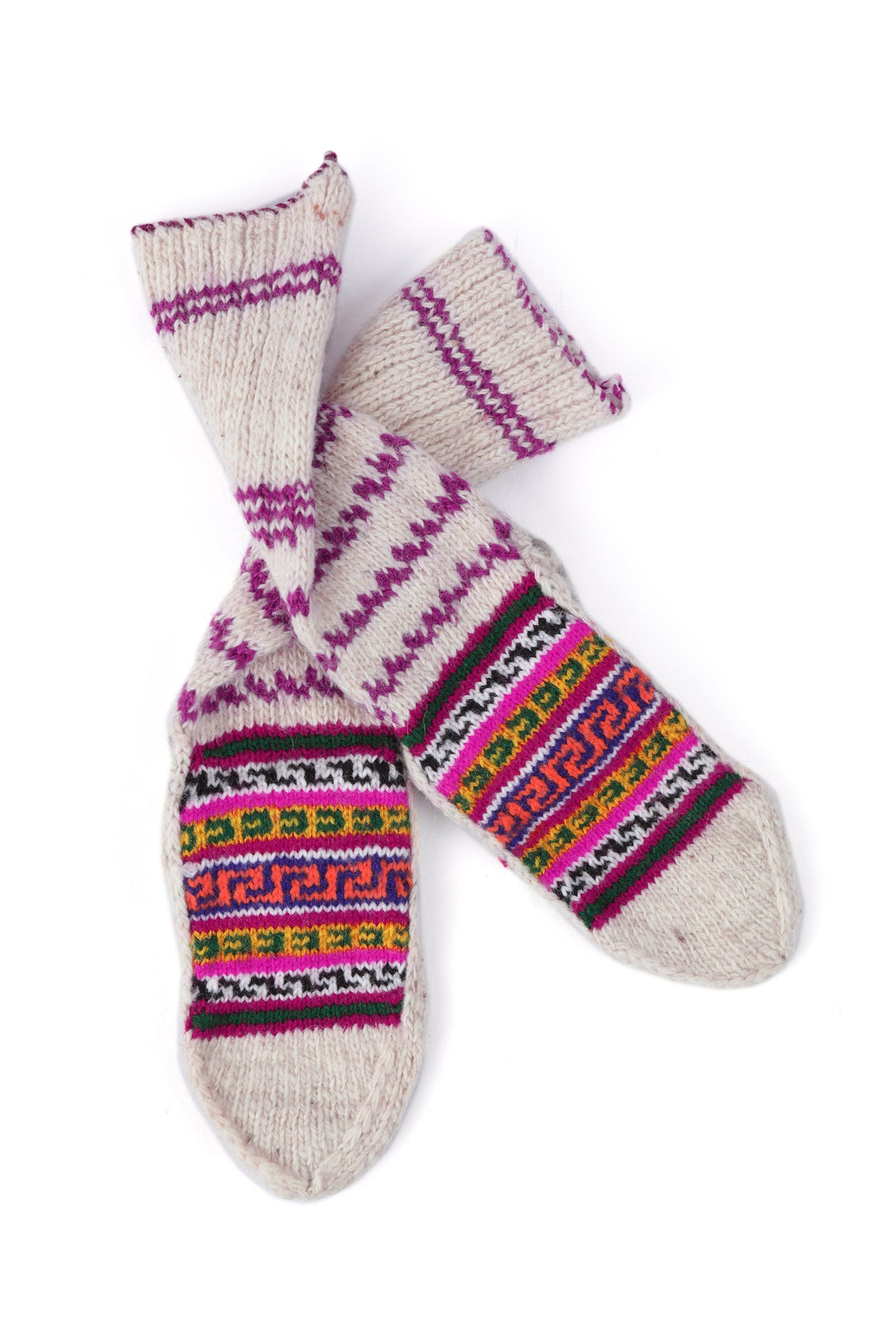 Feel cosy and add colours to your daily mundane life with this pair of multicolored socks. Hand knitted in premium acrylic wool, this multi-coloured traditional Himachali socks is warm, soft and comfortable and features beautiful handwoven embroidery and is a must-have in your winter wardrobe.