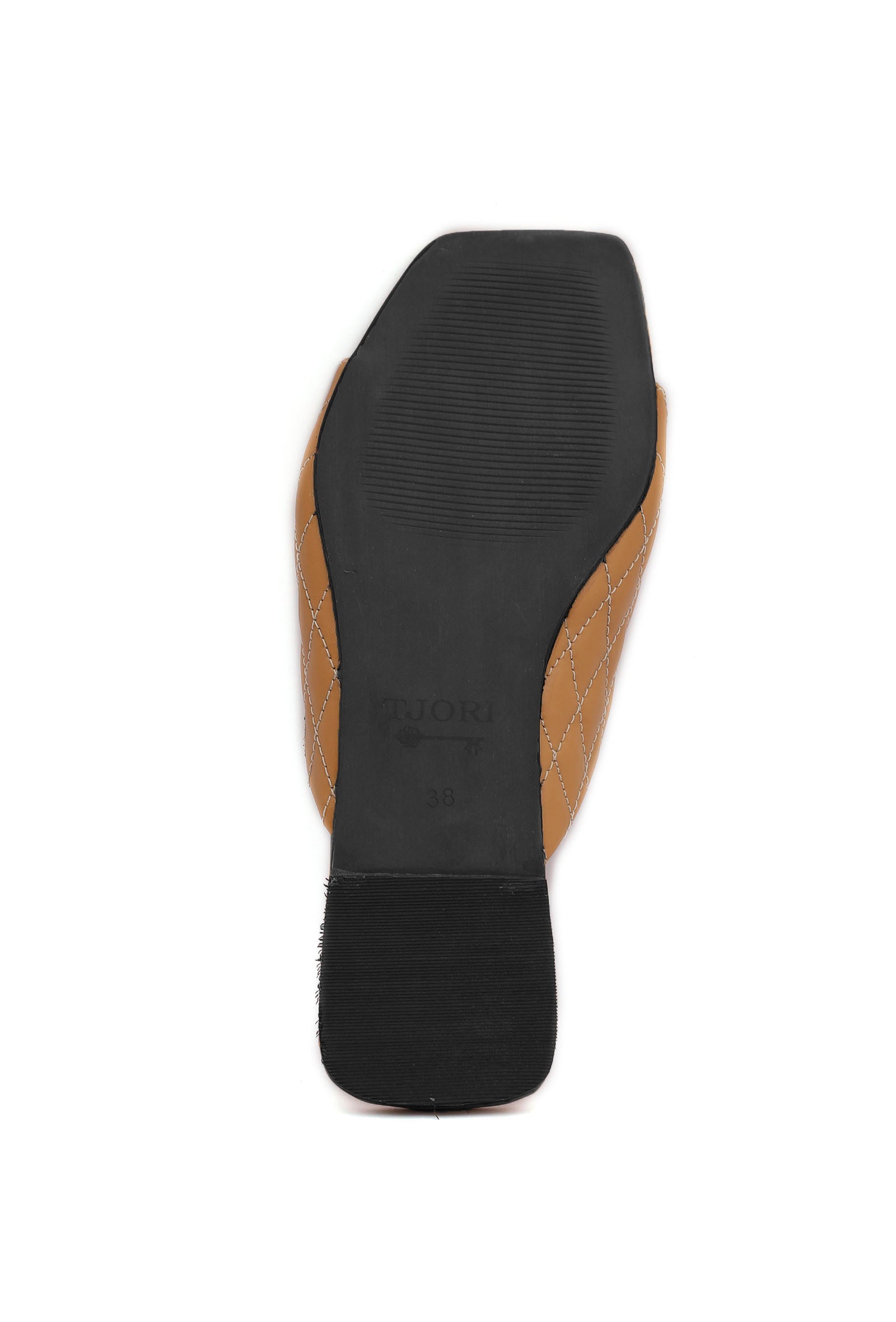 Caramel Brown Quilted Cruelty Free Leather Sliders