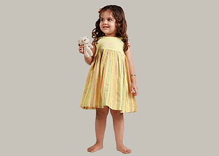 Yellow Dobby & Striped Dress