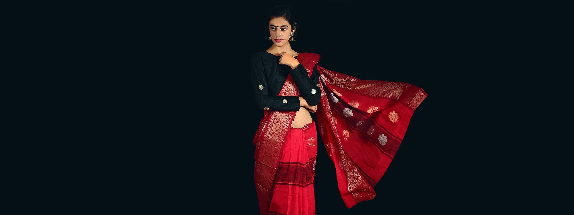 The Handloom Cotton saree can be accounted for its 5,000 years of existence and has also been claimed the oldest piece of nine yards of wonder. This ancient clothing originated from the very fact that stitching was impure in Hinduism, so strategically this had to be pleated and folded across the body to make it a proper attire.