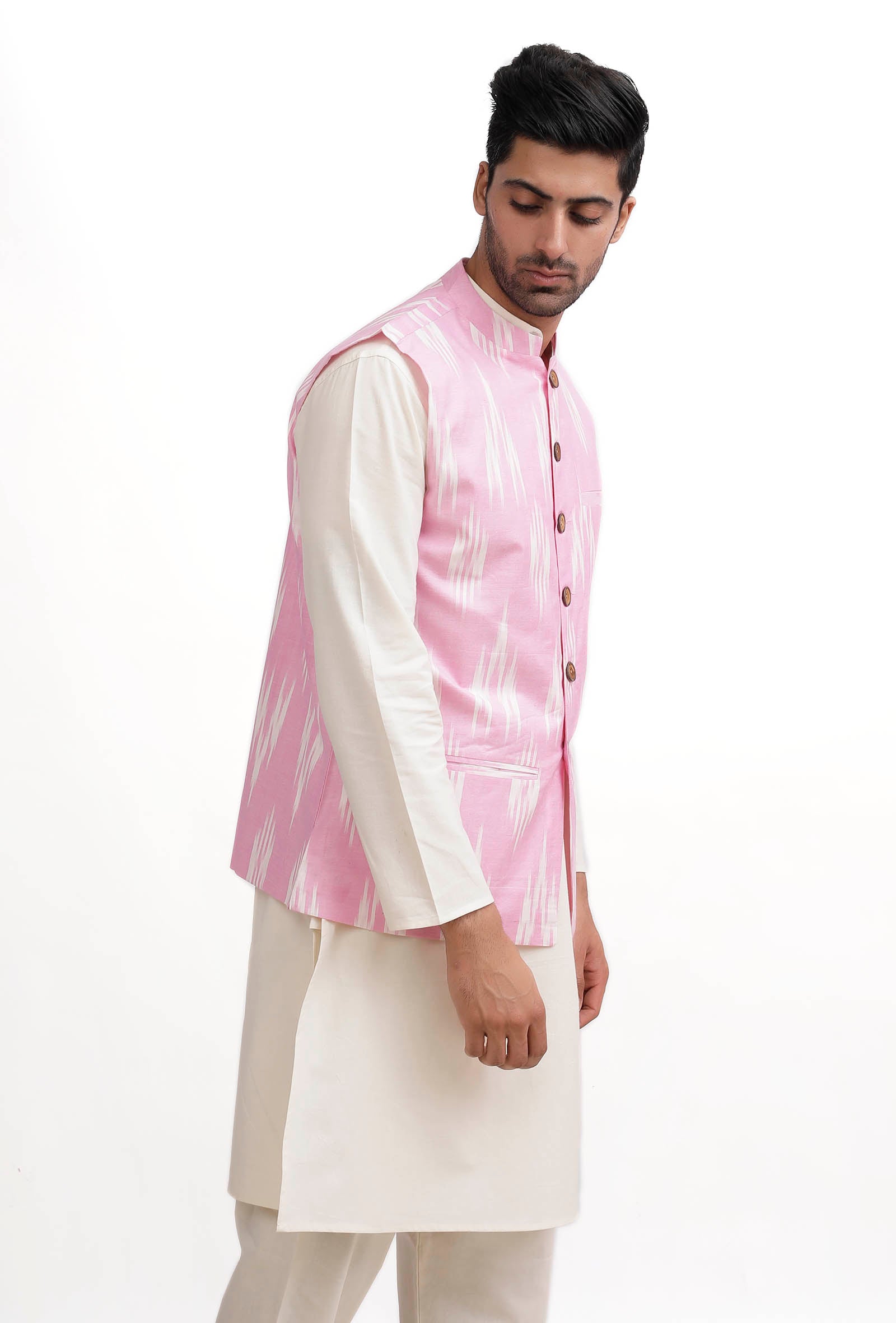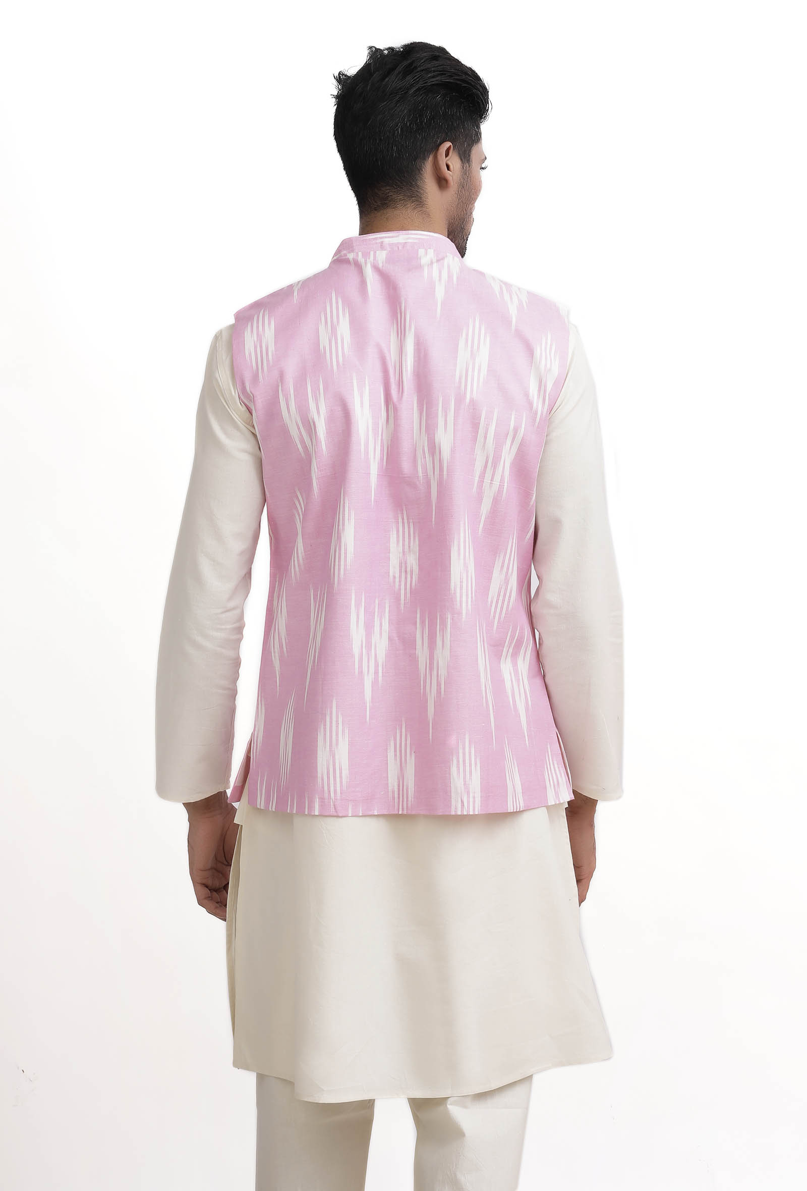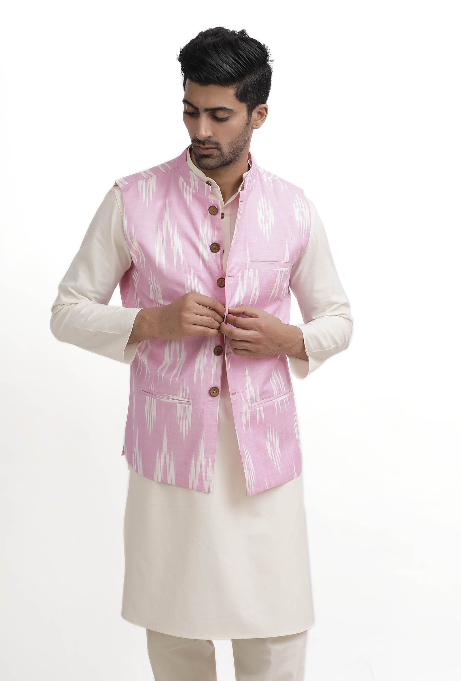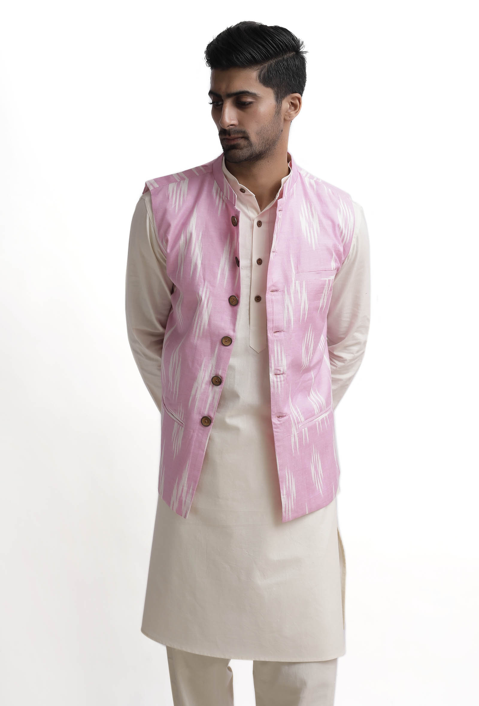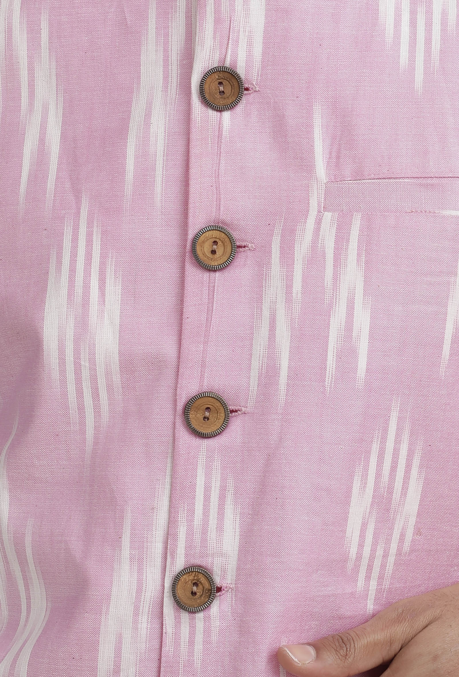Tjori brings to you these Ikat Nehru jackets this festive season exclusively for you! It offers a regular fit which suits all body perfectly. It guarantees an incredibly stylish look without compromising on comfort and breathability.The jacket offers shape and structure to your ethnic ensemble while the relaxed fit lets you spend the day in comfort. It features wooden buttons along with cotton lining.