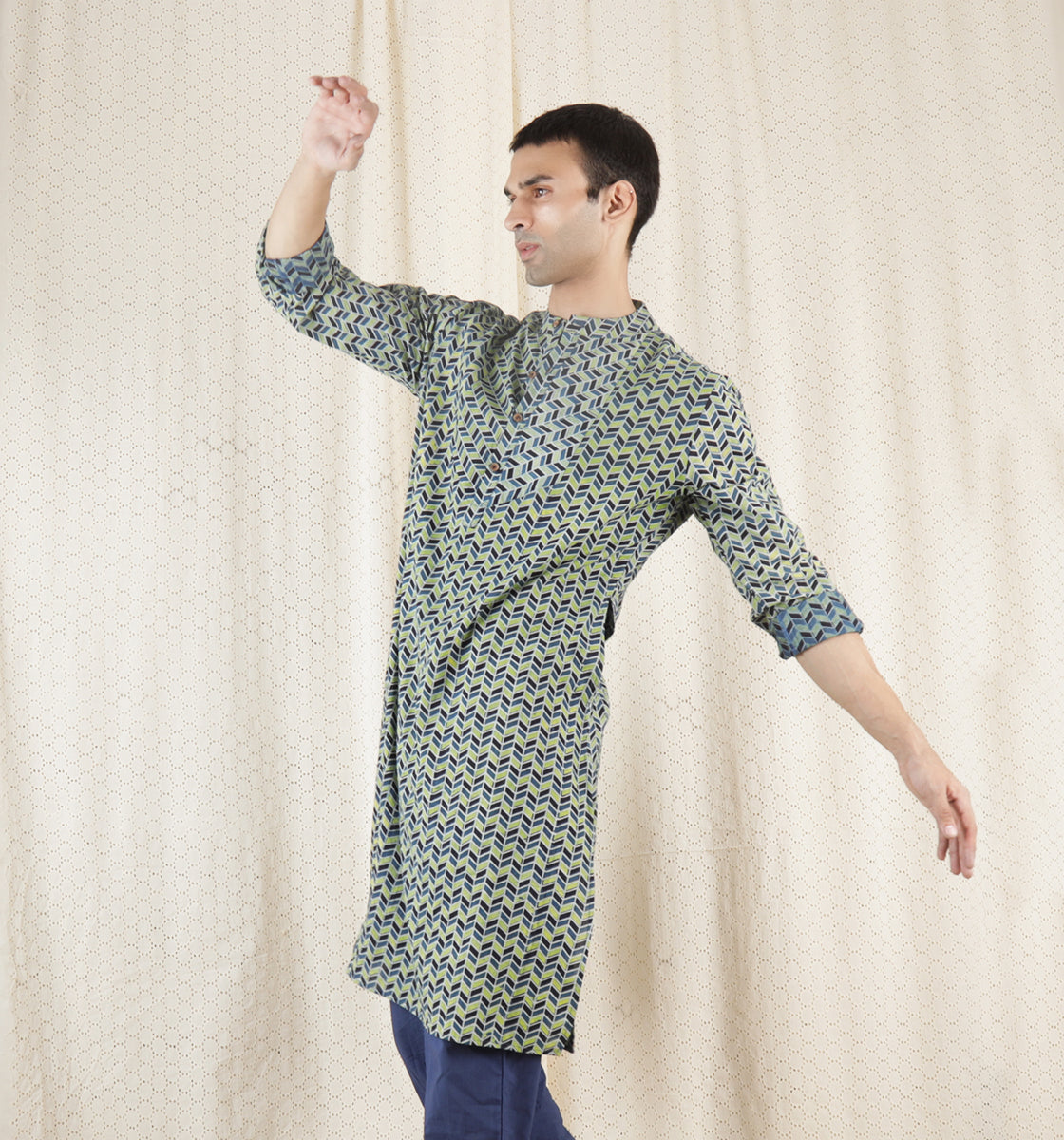 Flaunt your sophisticated appearance on any casual or festive occasion with this simple yet elegant short kurta. Tailored in premium cotton material, this indigo coloured kurta has full sleeves and round with a V cut neckline. It also features pockets...