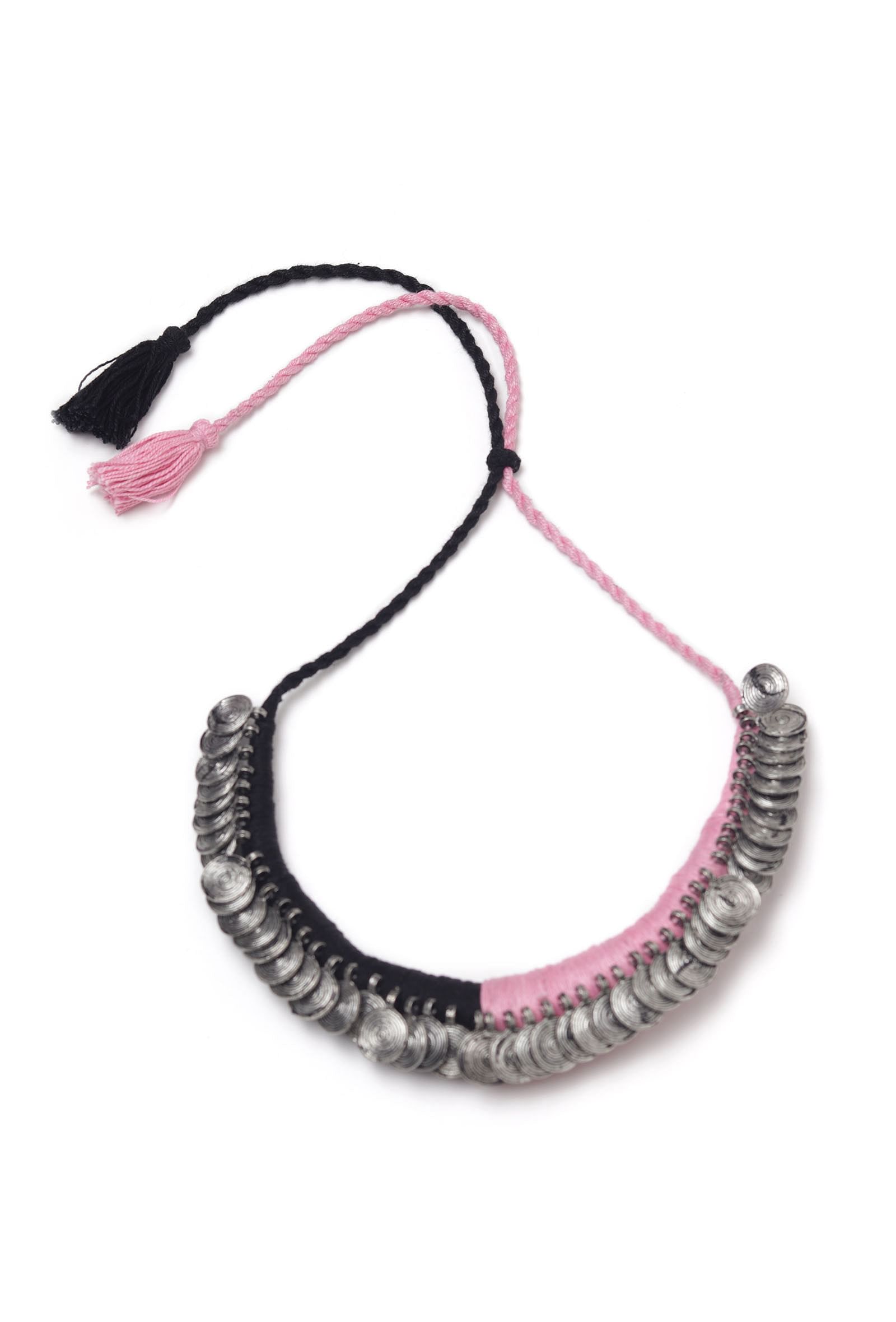 Evergreen grace with our tribal necklace! A classic fusion of exquisite craftsmanship & feminine elegance. Pair these Intricate Necklace with any outfit to craft a precious look. This simple piece will accent your day to night style. This collection features originally designed, handmade jewelry, crafted from threadwork. It comes with an adjustable thread loop for a firm grip.