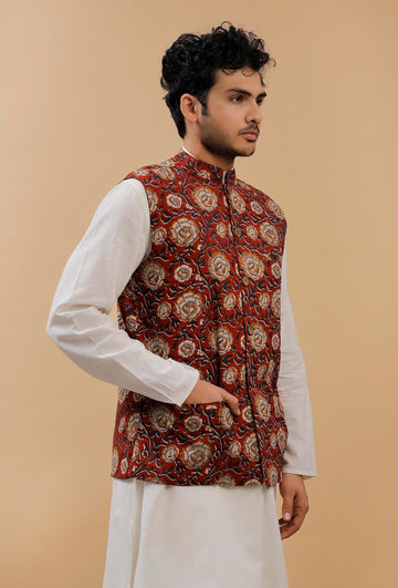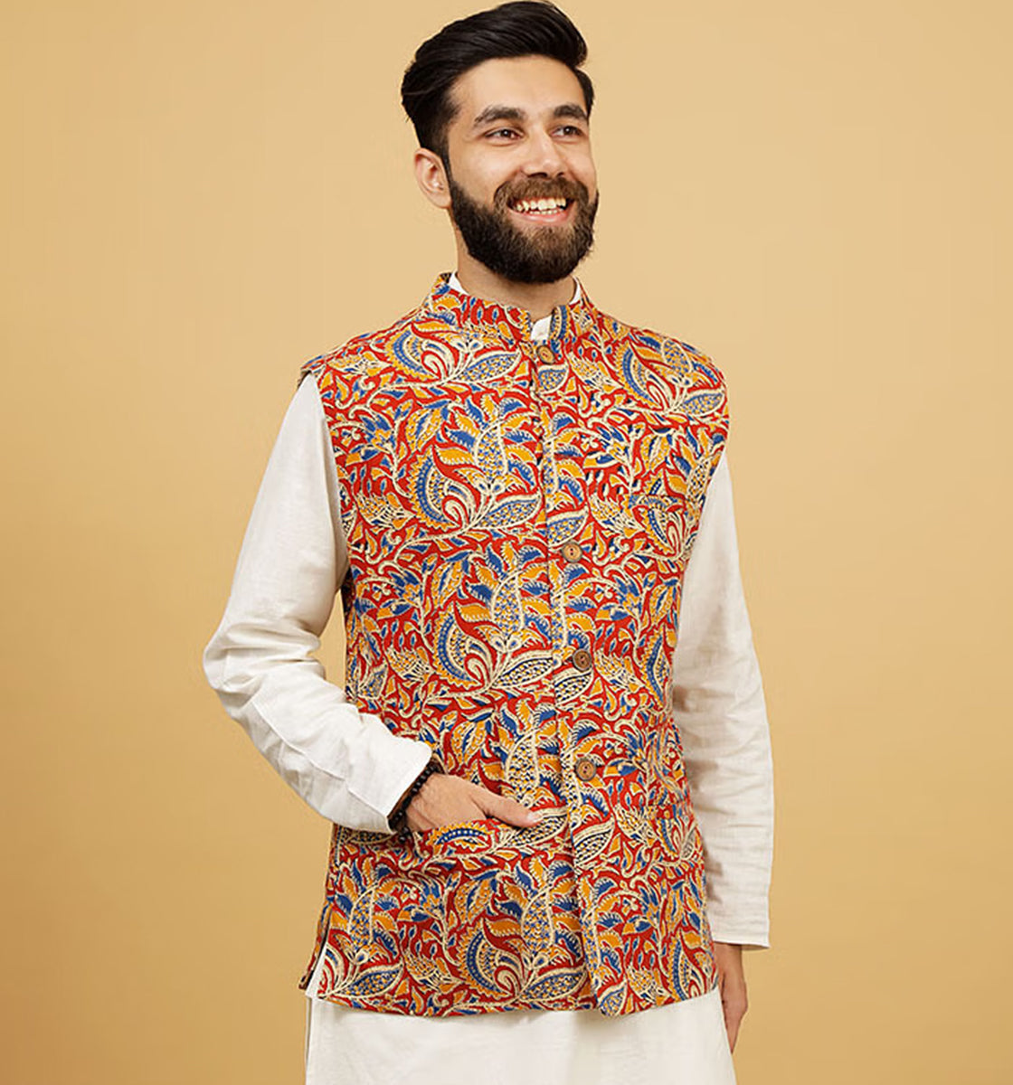 Step into India's rich heritage with Tjori's Kalamkari Nehru jackets- where tradition meets artistry. Known for intricate hand-painted designs, these ethnic wear for men showcase the beauty of Kalamkari art. Every jacket is a unique piece of timeless excellence. Ideal for festivities and casual outings, our online selection of Kalamkari jackets adds a touch of tradition to modern fashion.