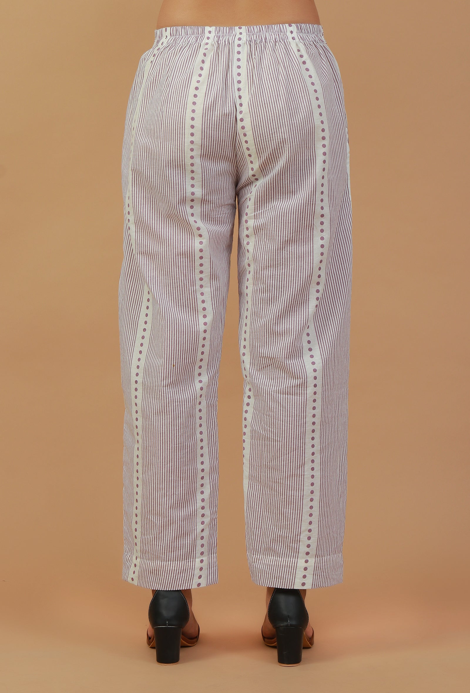 Set Of 2: Lavender Floral Printed Cotton Kurta with Striped Pants