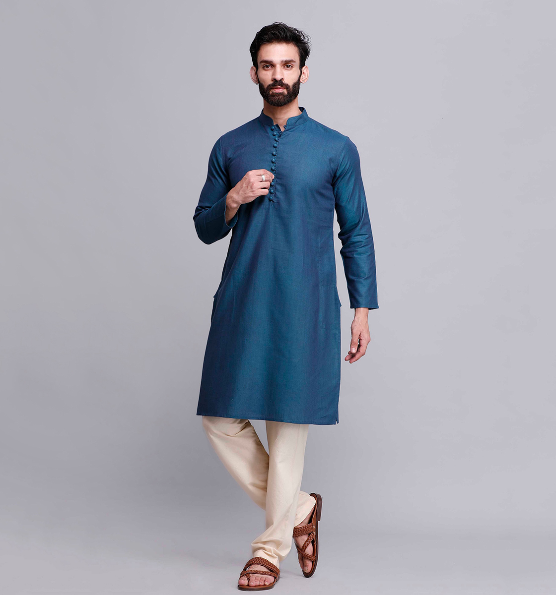 Find your perfect style with this kurta and pyjamas set which is suitable pick for you to wear for occasion. Crafted from fine quality cotton, which is soft against your skin. The kurta flaunts full sleeves and closure buttons that...