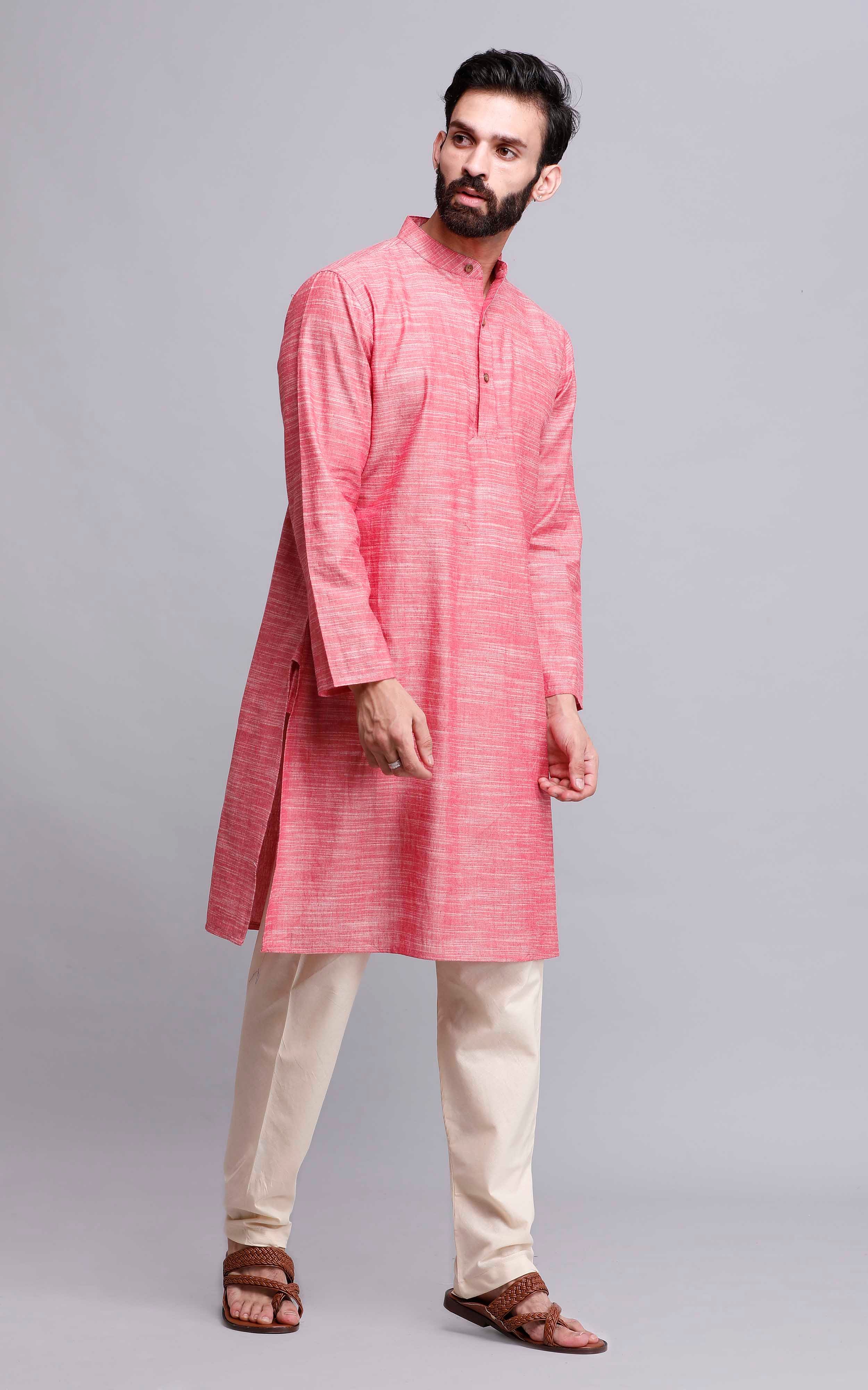 Find your perfect style with this kurta and pyjamas set which is suitable pick for you to wear for occasion. Crafted from fine quality cotton, which is soft against your skin. The kurta flaunts full sleeves and closure buttons that lends it a classy appeal while the pair of solid contrast pyjamas complete the ensemble.