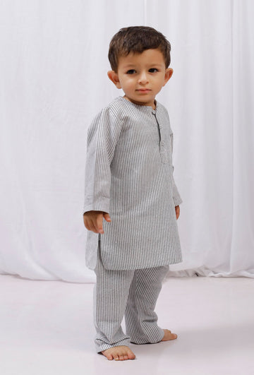 Set of 2 - Off-White Stripe Weave Malmal Kurta Pyjama