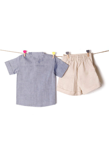 Set of 2: Baby Blue Chambray Shirt & Off White Cotton Pants Shorts
