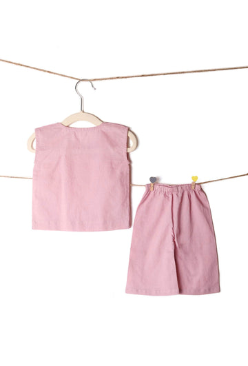 This handstitched peachy pink kurta pajama set is a heart stealer with its detailed best pocket and coconut shell buttons. It is made from sustainability promoting bamboo fabric and gives your baby no worries with its pure, irritation-free and breathable...
