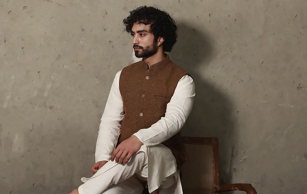 Look polished and sophisticated this festive season with this mandarin collar waistcoat Handcrafted in cotton with finesse and adorned with an alluring fine print, this contemporary waistcoat reflects an authentic flairPair it best with kurta's and even western apparels! ....