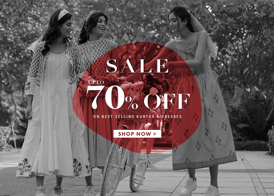 This set of two includes a beautiful, free-flowing kurta, skirt and dupatta, that have been handcrafted in soft, pure cotton. Enhanced with block printed Kalamkari florals in black and beige, it features a V -neck with comfortable three-fourth sleeves and...