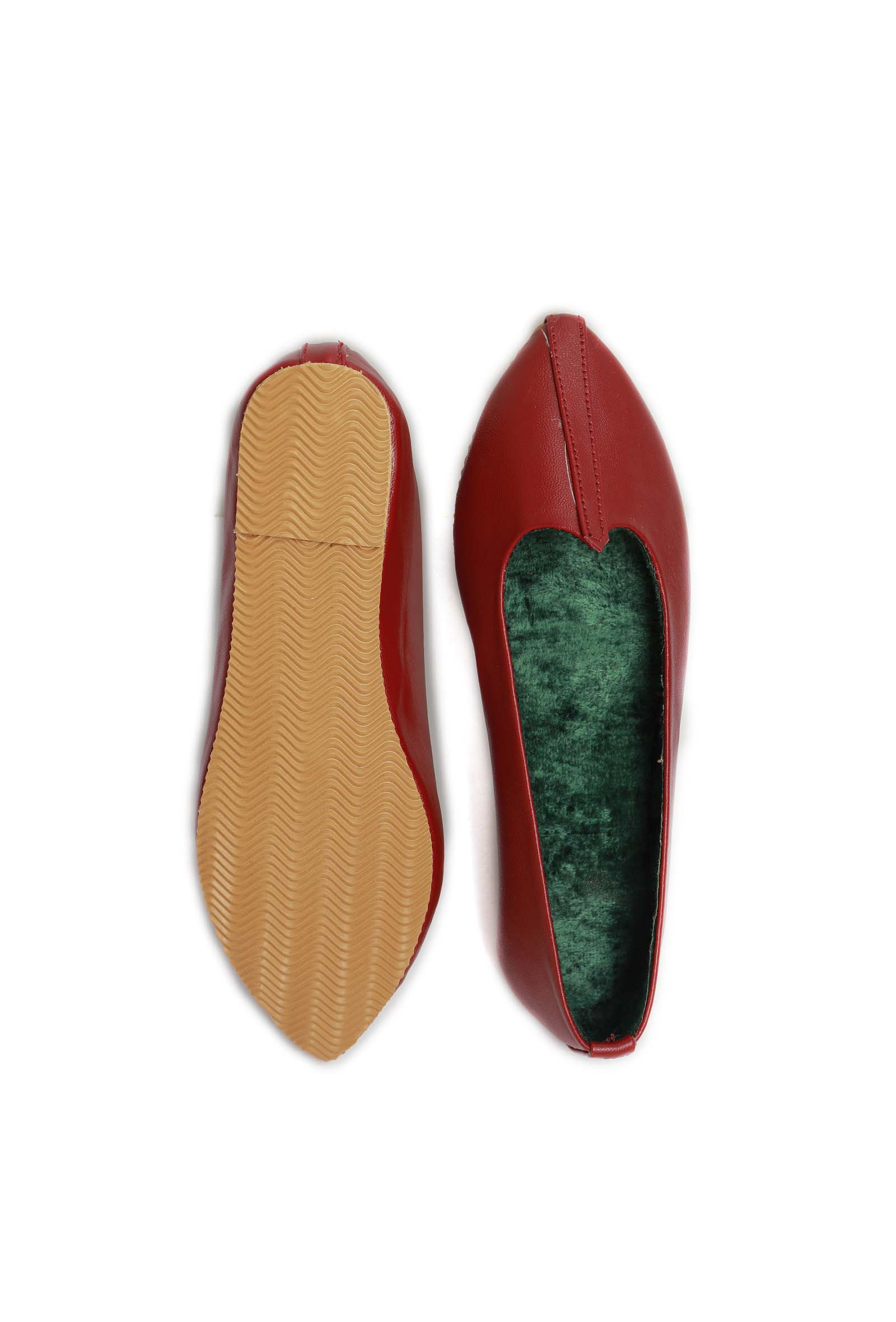 Lovely maroon juttis with a luxurious velvet lining in contrast green. These simple yet sophisticated juttis have been handcrafted using premium cruelty-free leather.